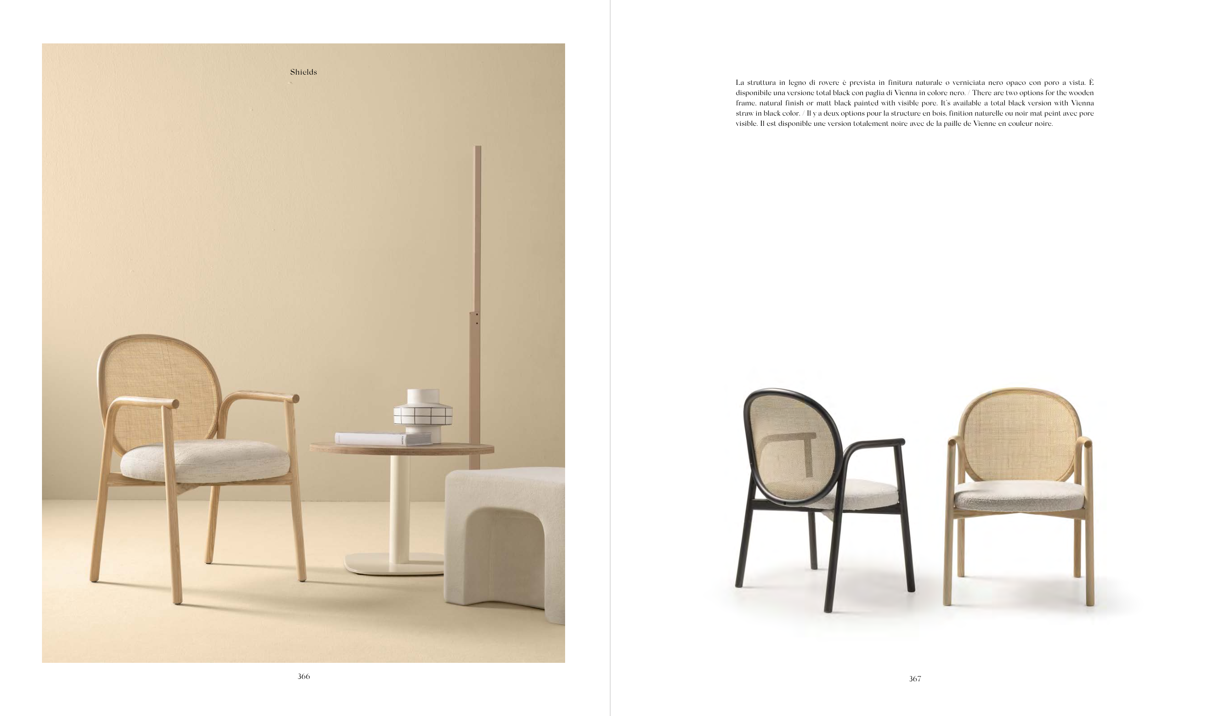 disponibile una versione total black con paglia di Vienna in colore nero. / There are two options for the wooden