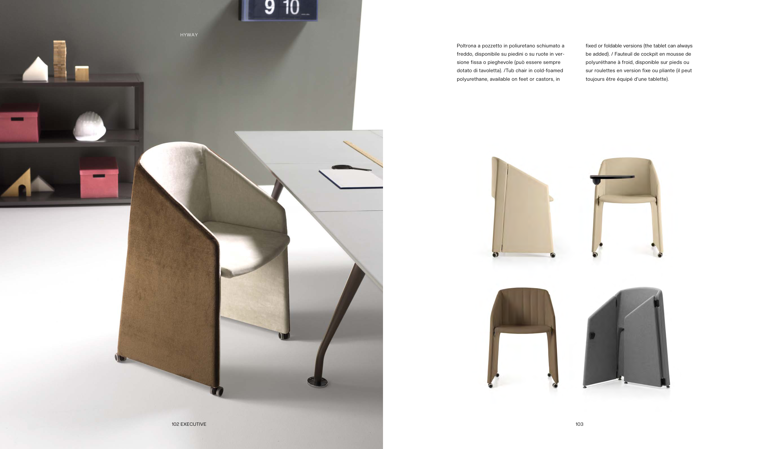 dotato di tavoletta). /Tub chair in cold-foamed