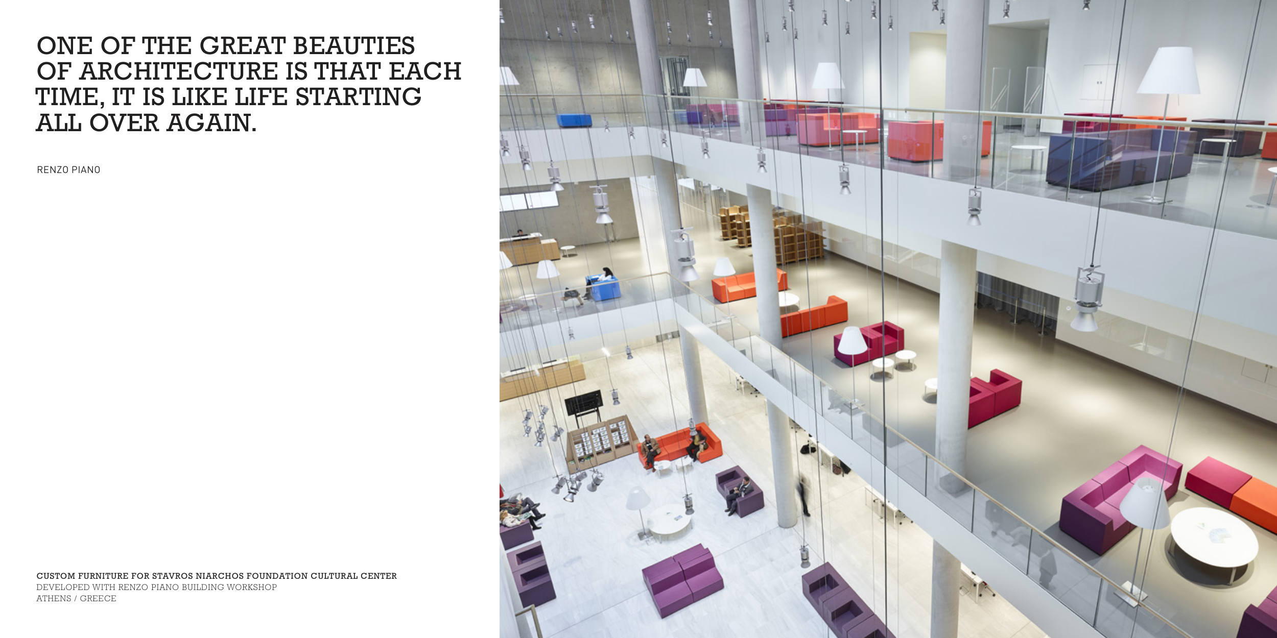 CUSTOM FURNITURE FOR STAVROS NIARCHOS FOUNDATION CULTURAL CENTER