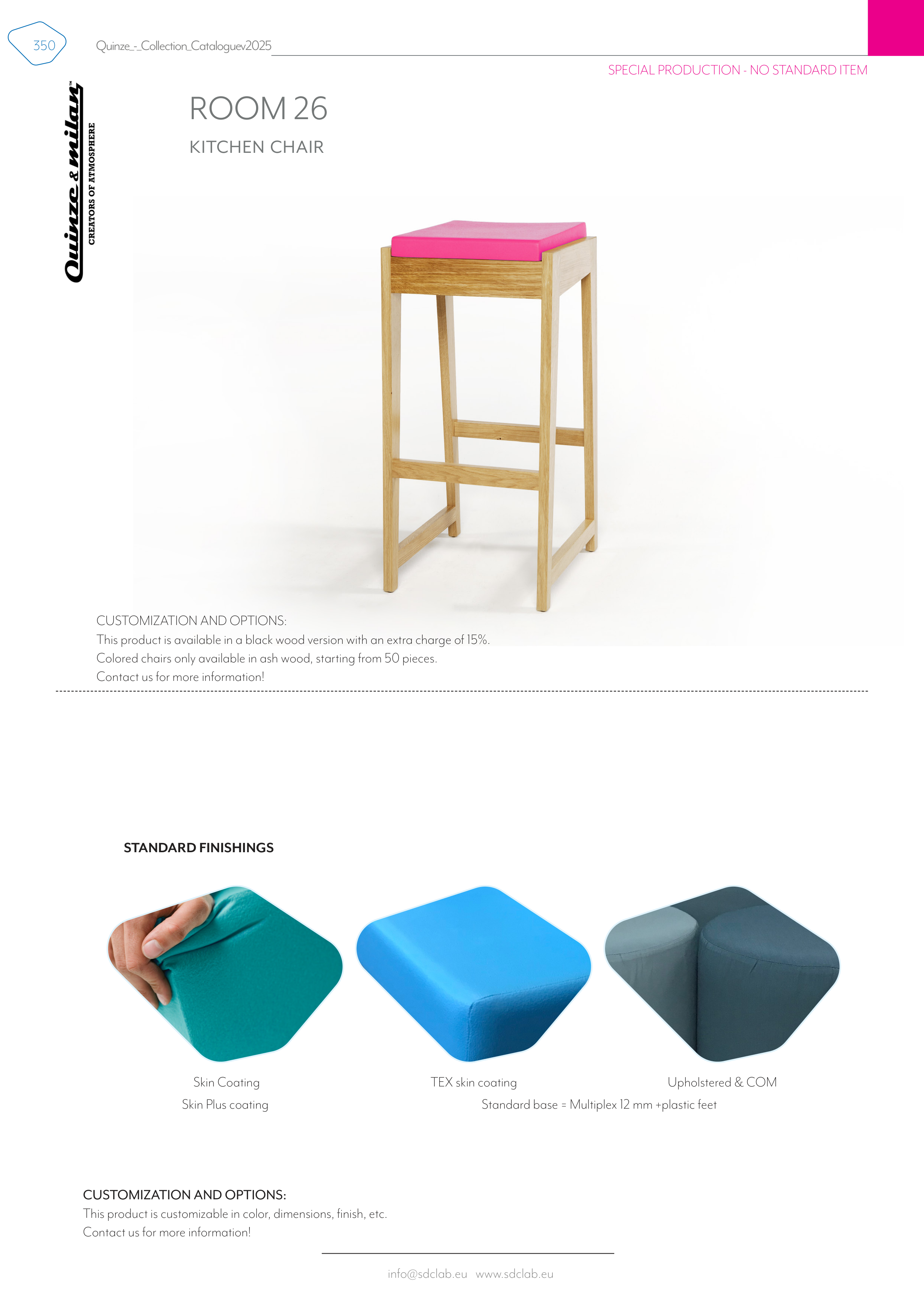 Colored chairs only available in ash wood, starting from 50 pieces.