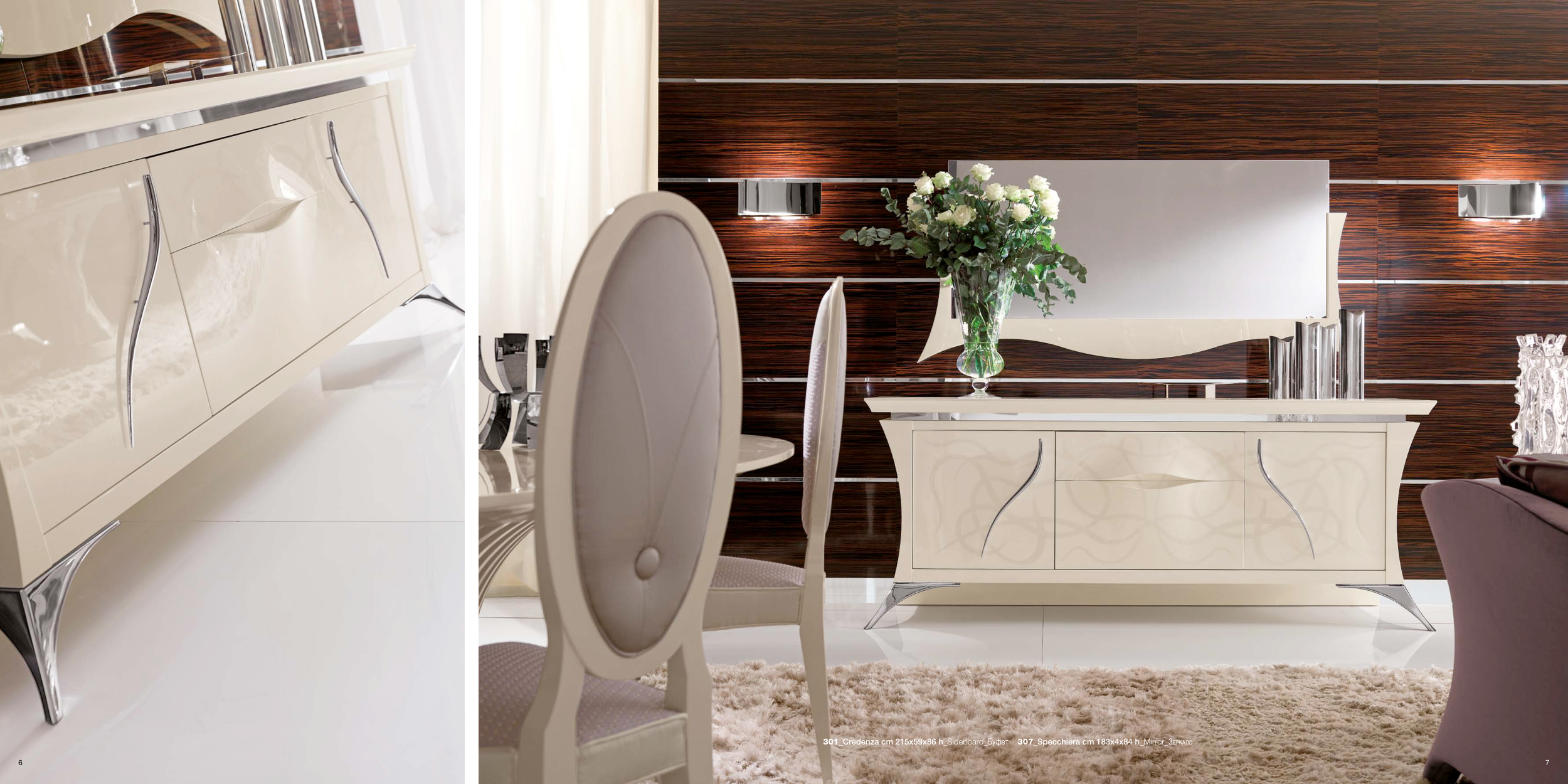 ART. 301_Credenza cm 215x59x86 h_Sideboard_Буфет ART. 307_Specchiera cm 183x4x84 h_Mirror_Зеркало