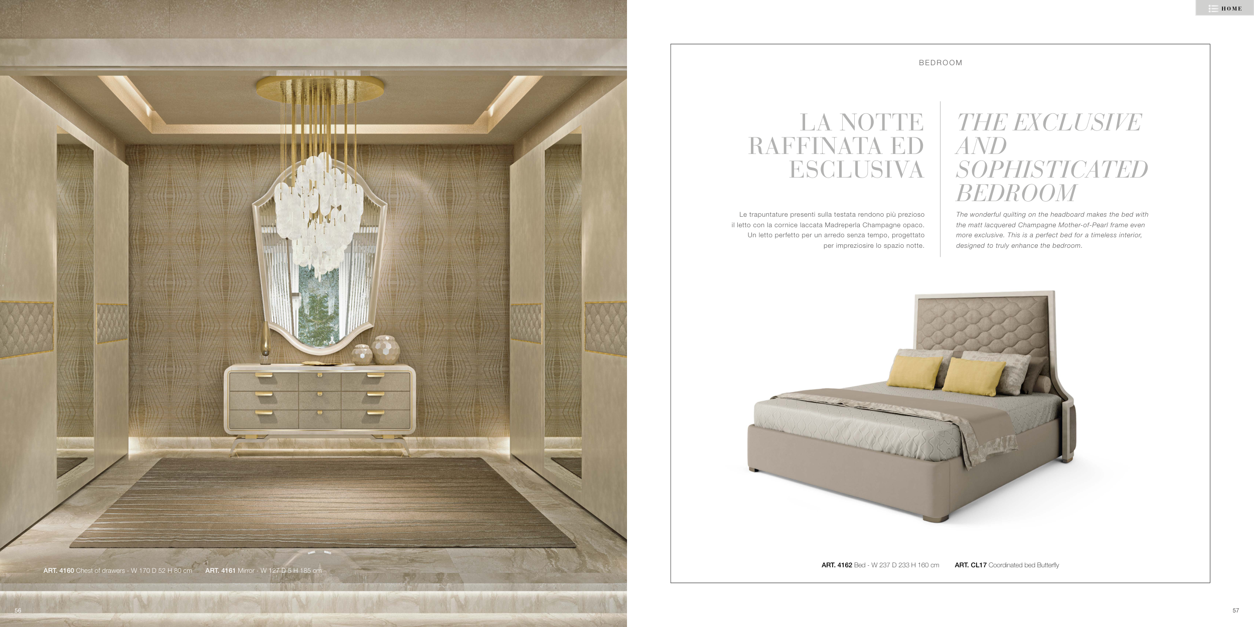 il letto con la cornice laccata Madreperla Champagne opaco.