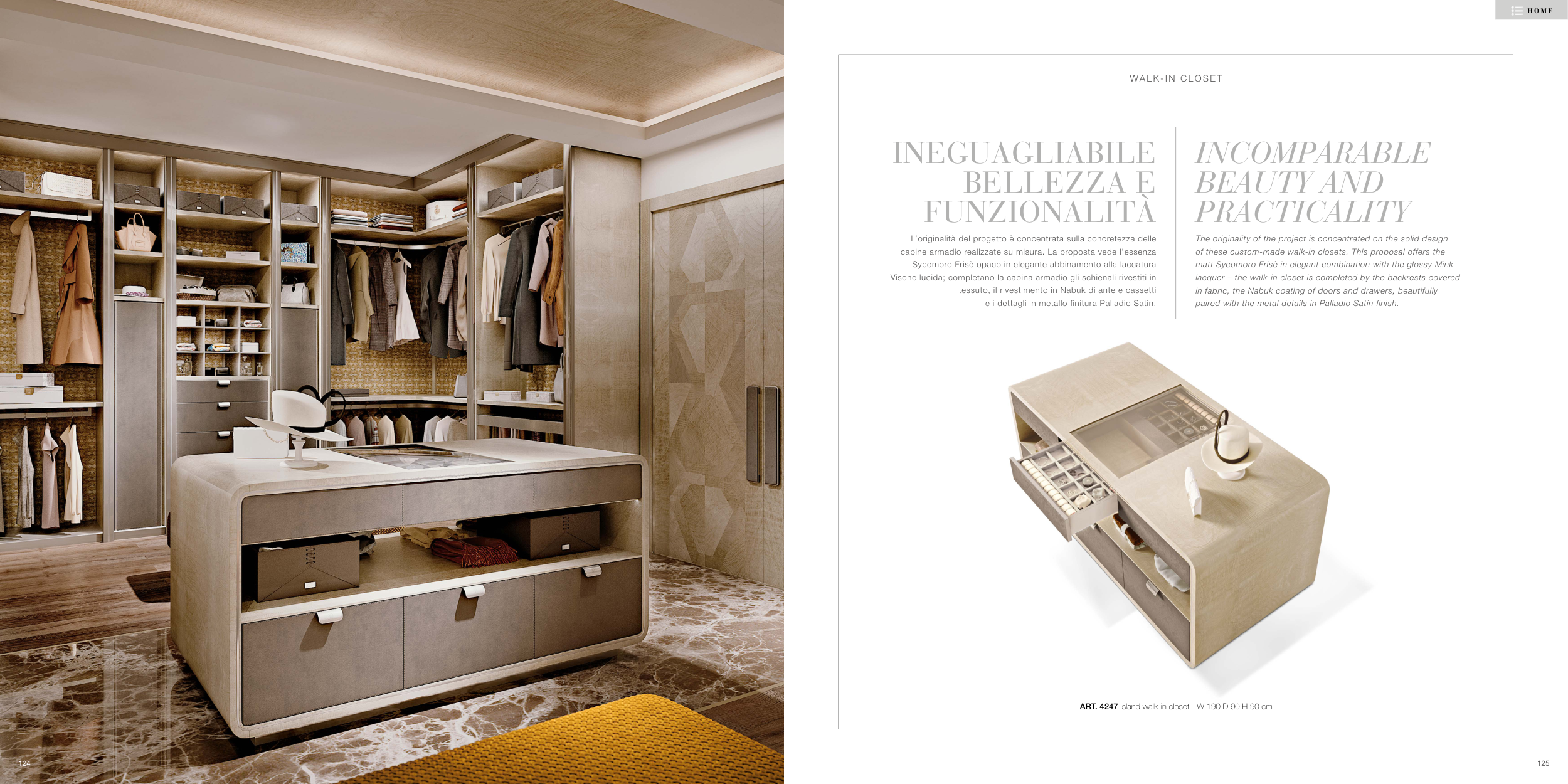 Visone lucida; completano la cabina armadio gli schienali rivestiti in