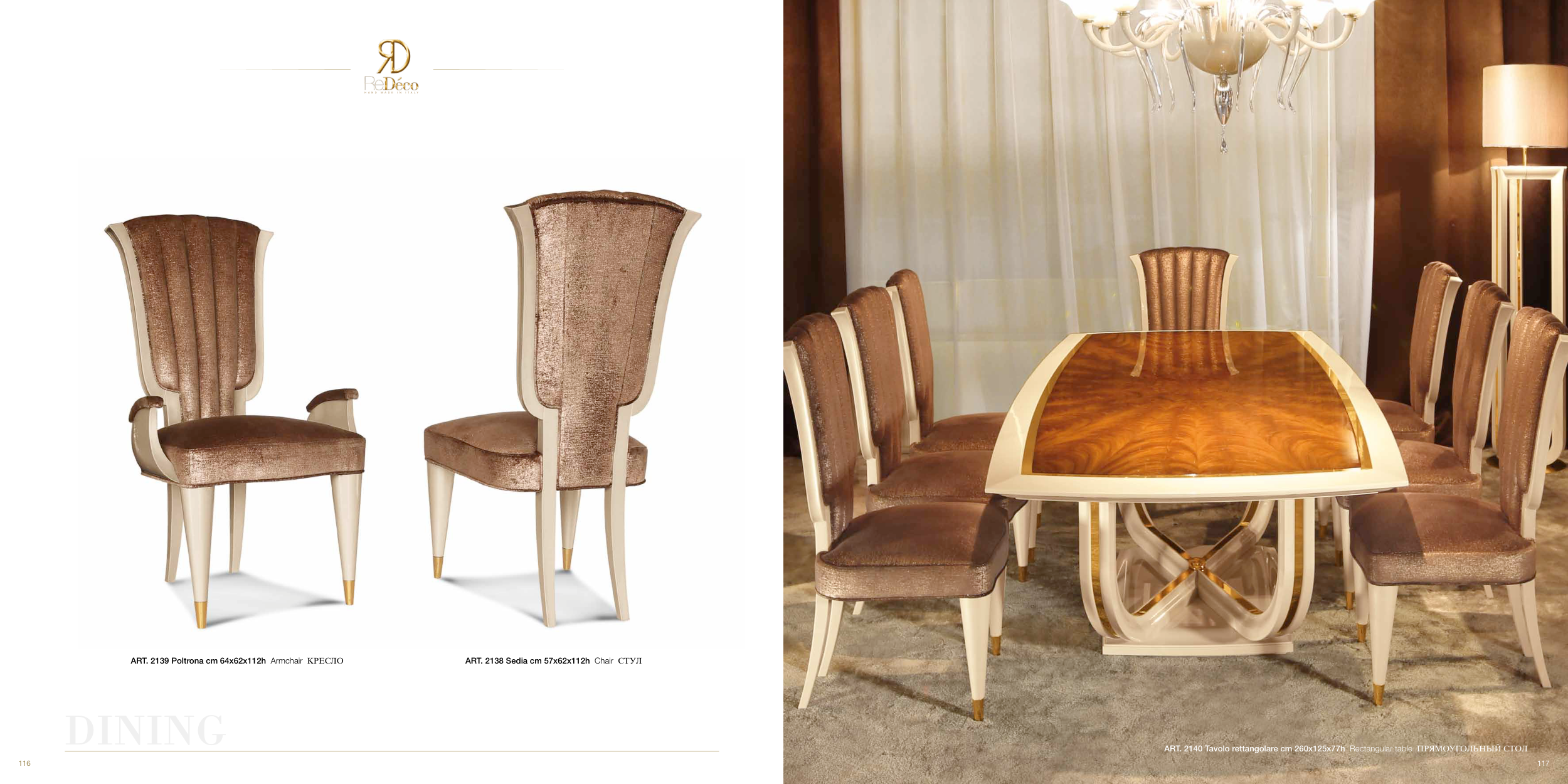 ART. 2140 Tavolo rettangolare cm 260x125x77h Rectangular table ПРЯМОУГОЛЬНЫЙ СТОЛ