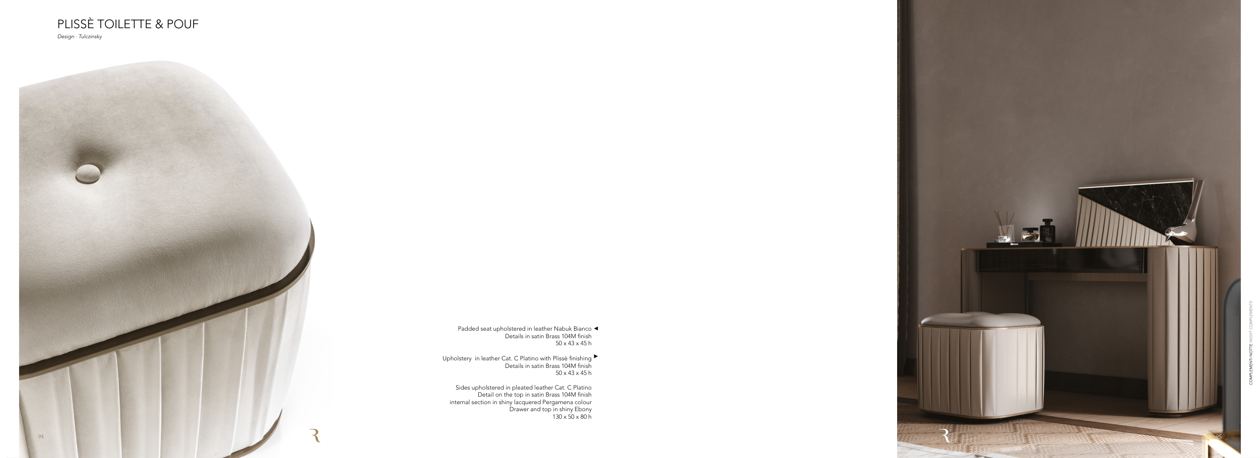 Sides upholstered in pleated leather Cat. C Platino