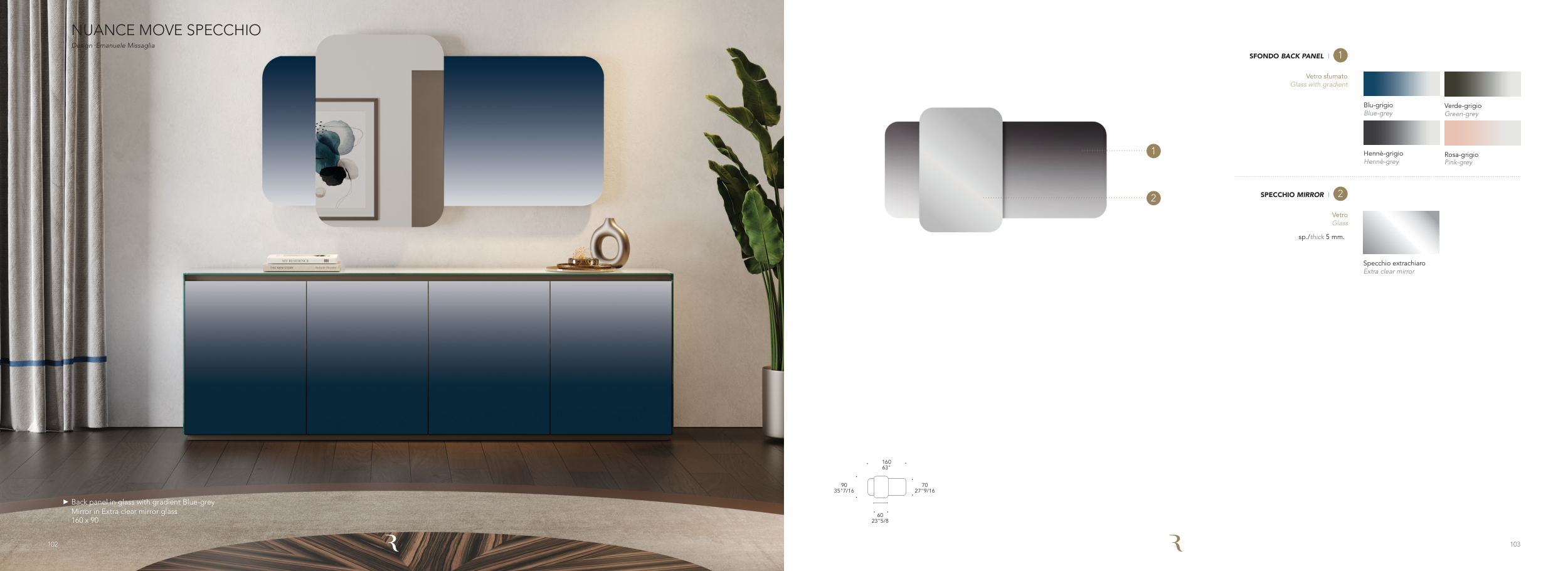 Back panel in glass with gradient Blue-grey