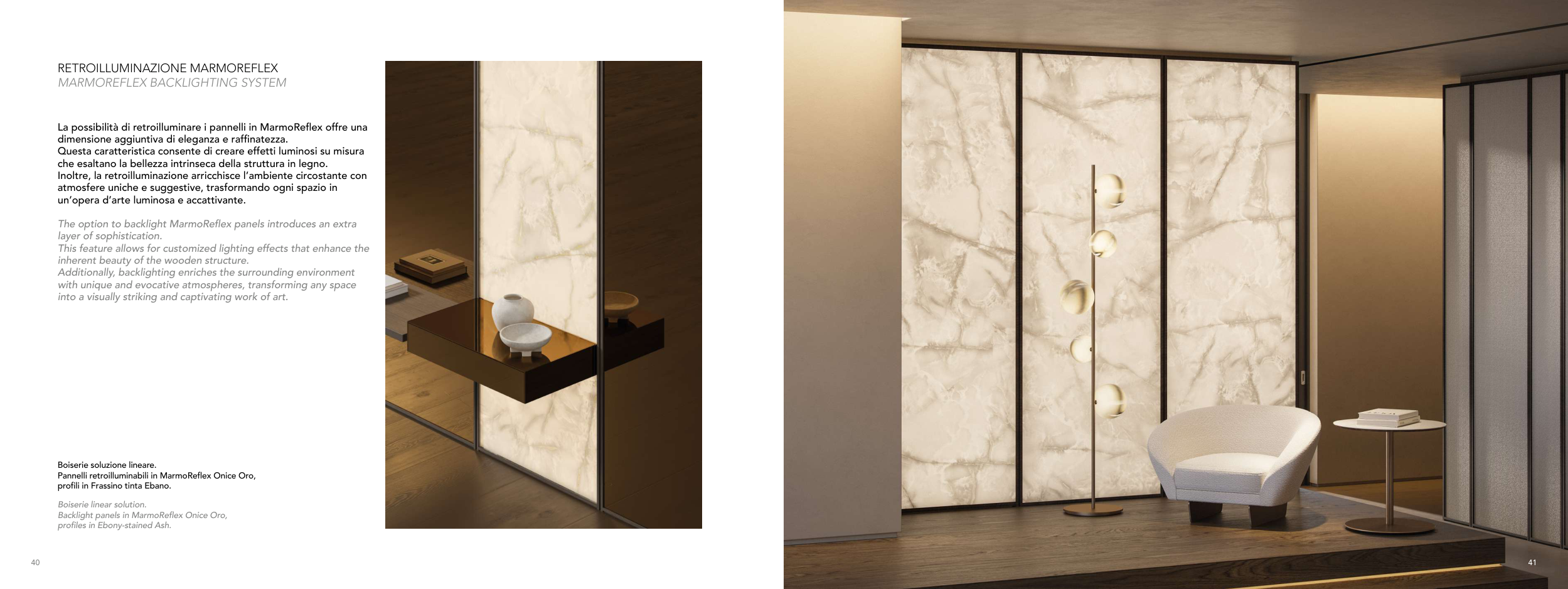 Backlight panels in MarmoReflex Onice Oro,