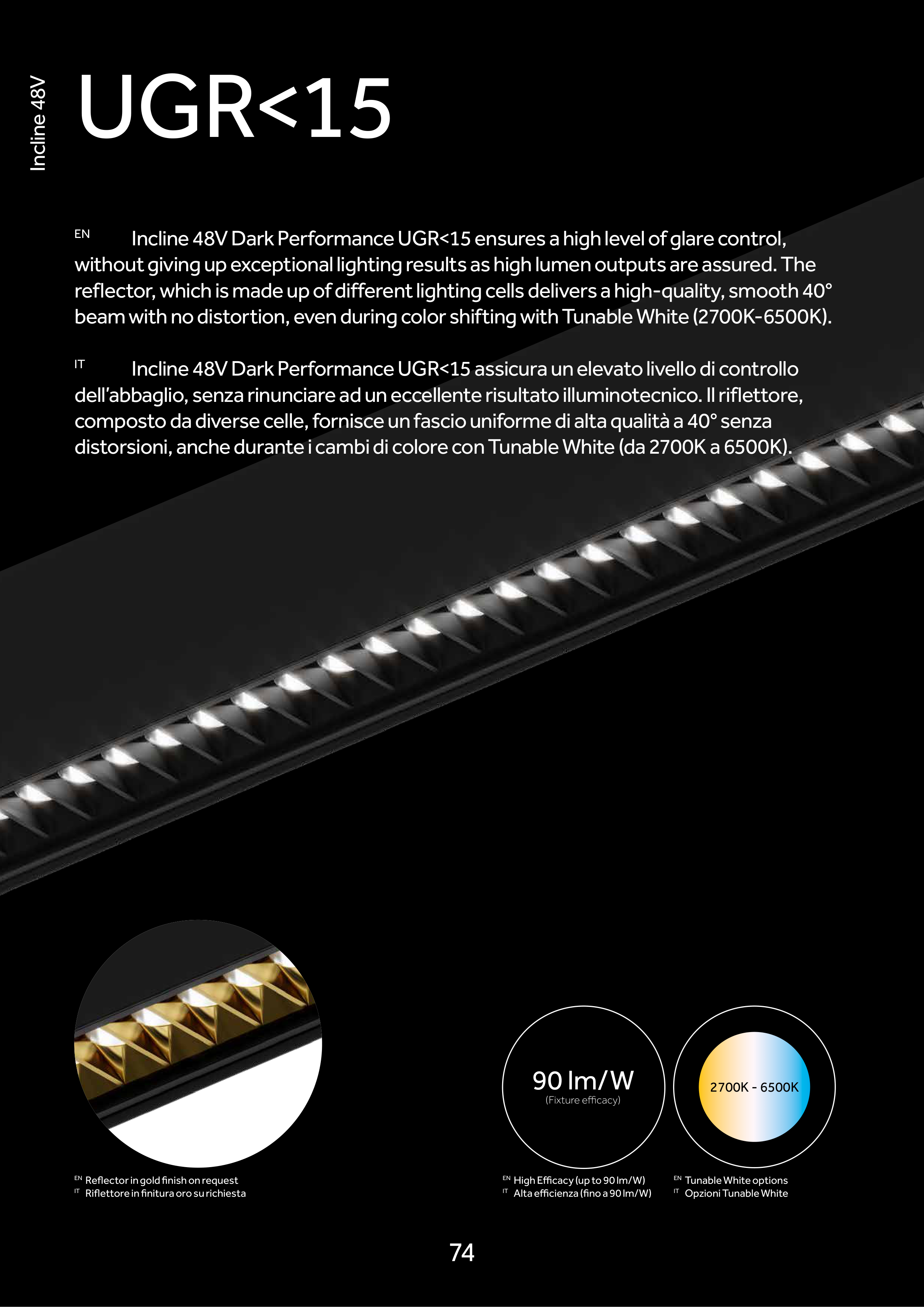 Incline 48V Dark Performance UGR<15 ensures a high level of glare control,