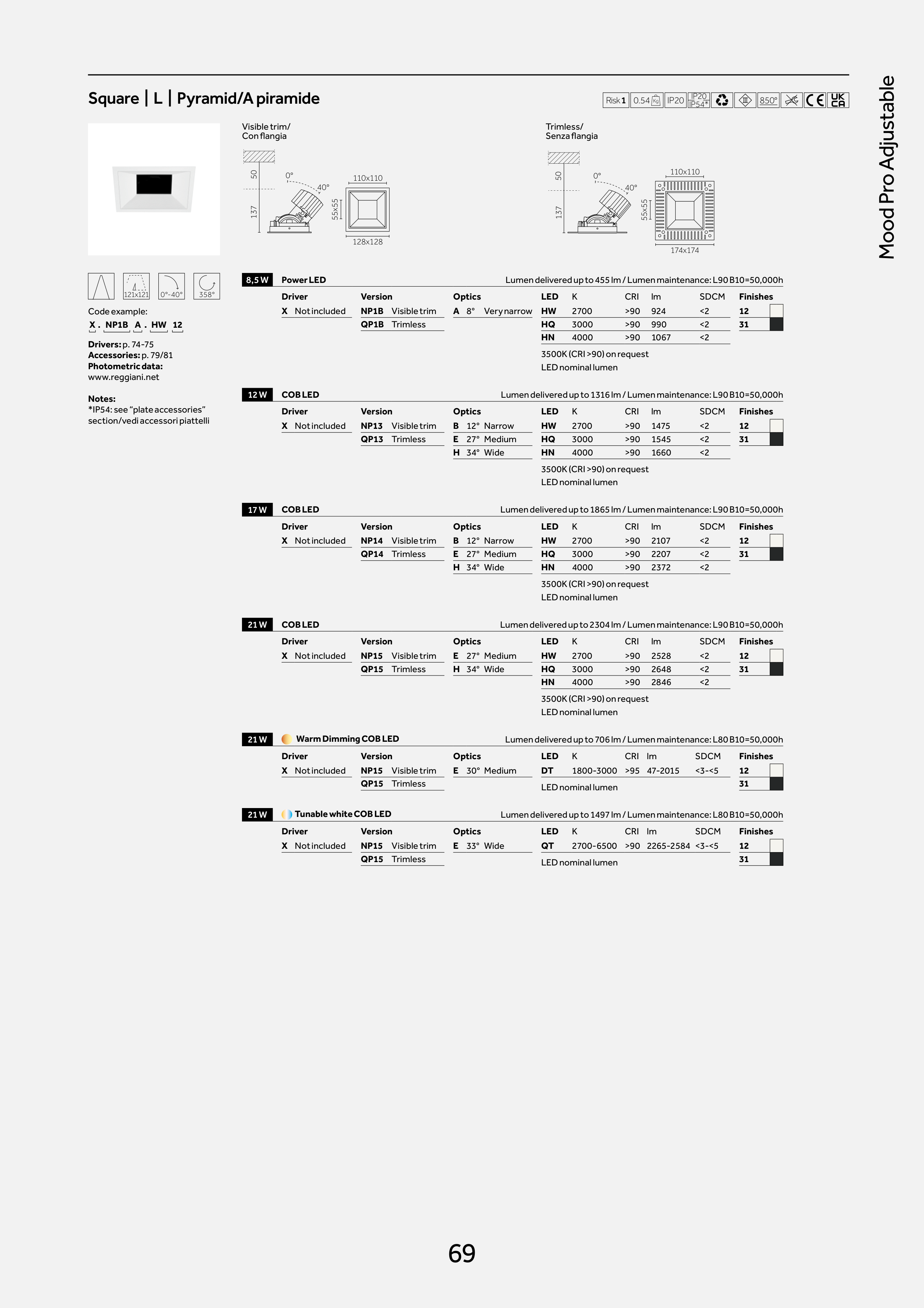 Lumen delivered up to 2304 lm / Lumen maintenance: L90 B10=50,000h