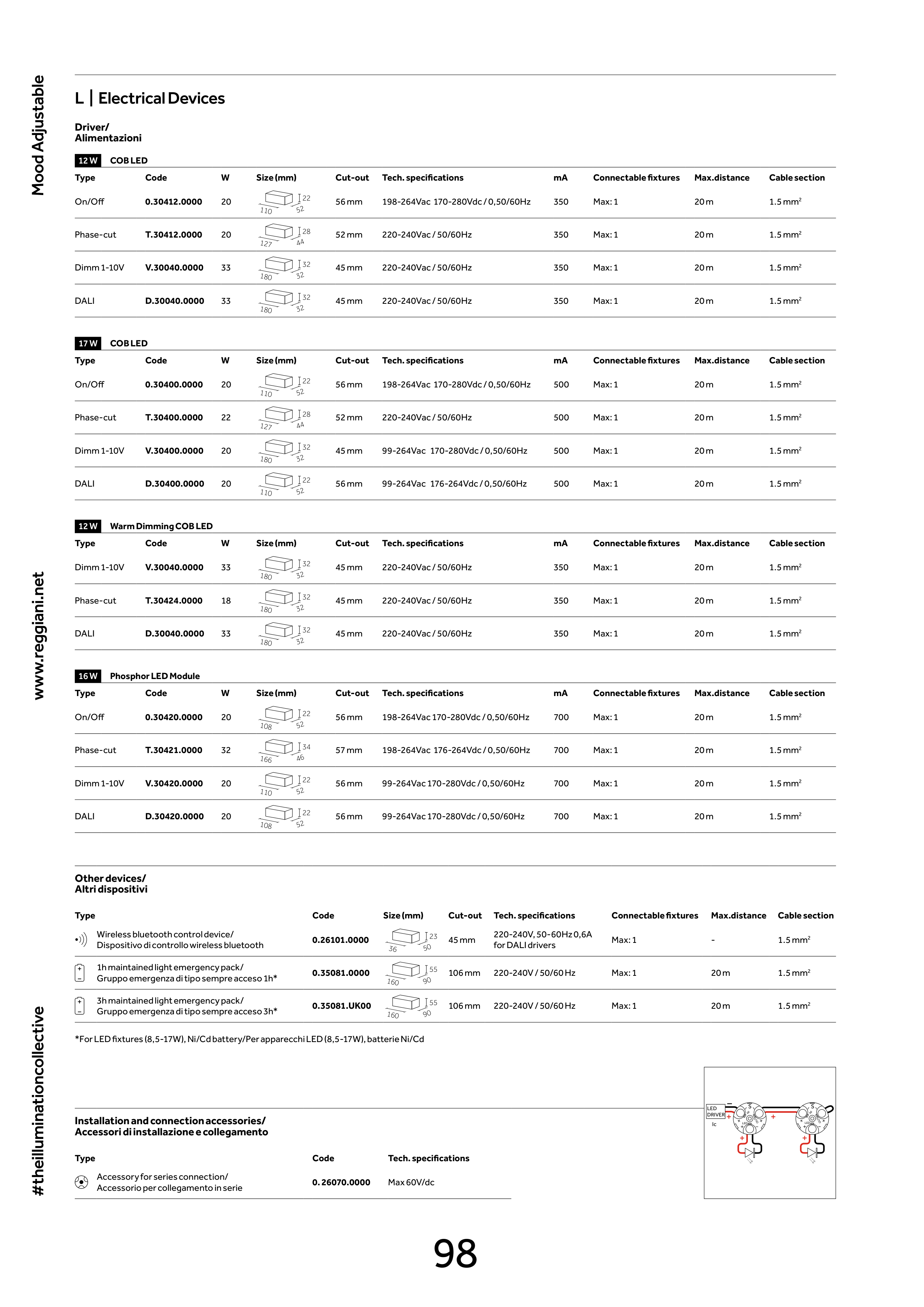 *For LED fixtures (8,5-17W), Ni/Cd battery/Per apparecchi LED (8,5-17W), batterie Ni/Cd