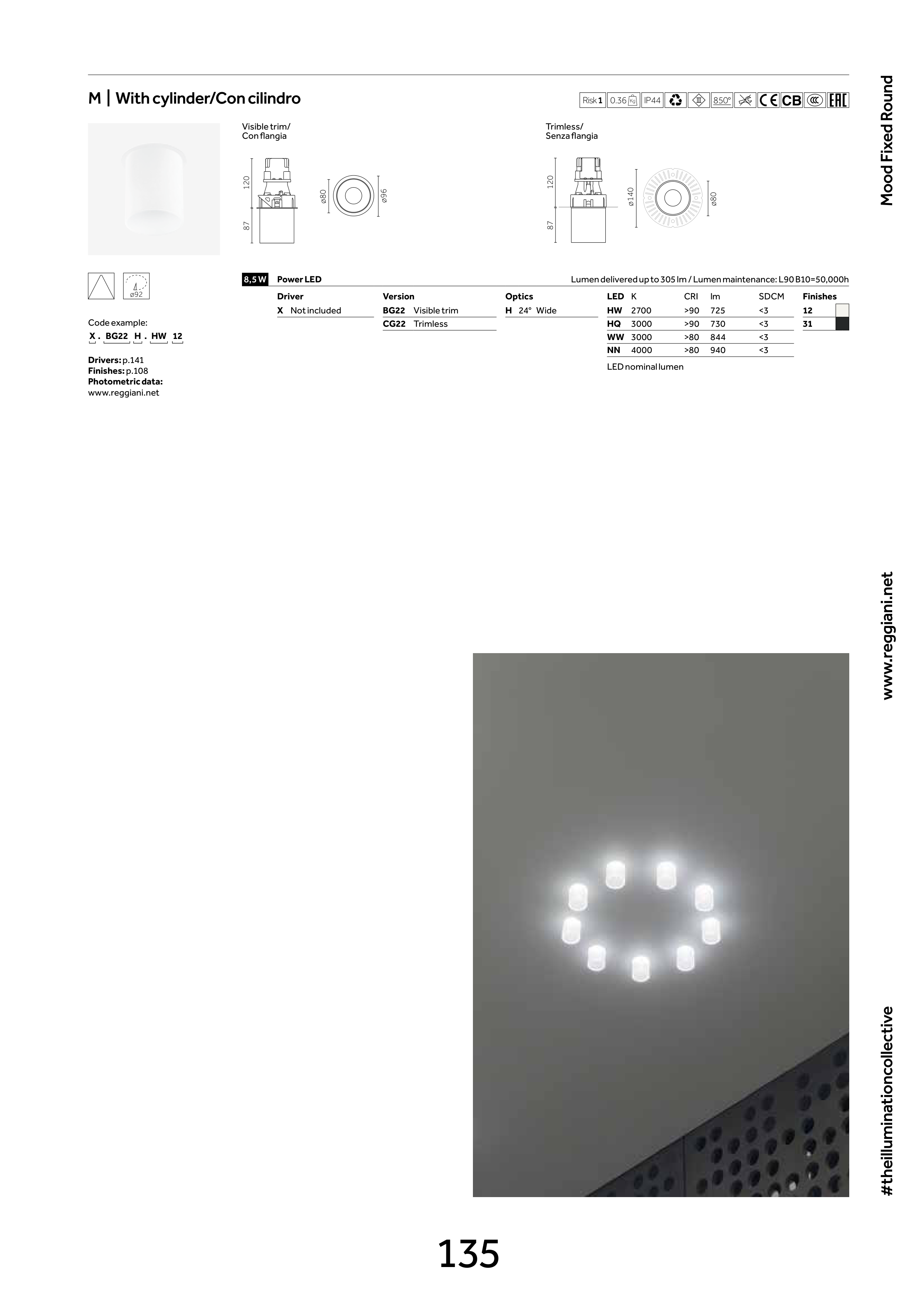 Lumen delivered up to 305 lm / Lumen maintenance: L90 B10=50,000h