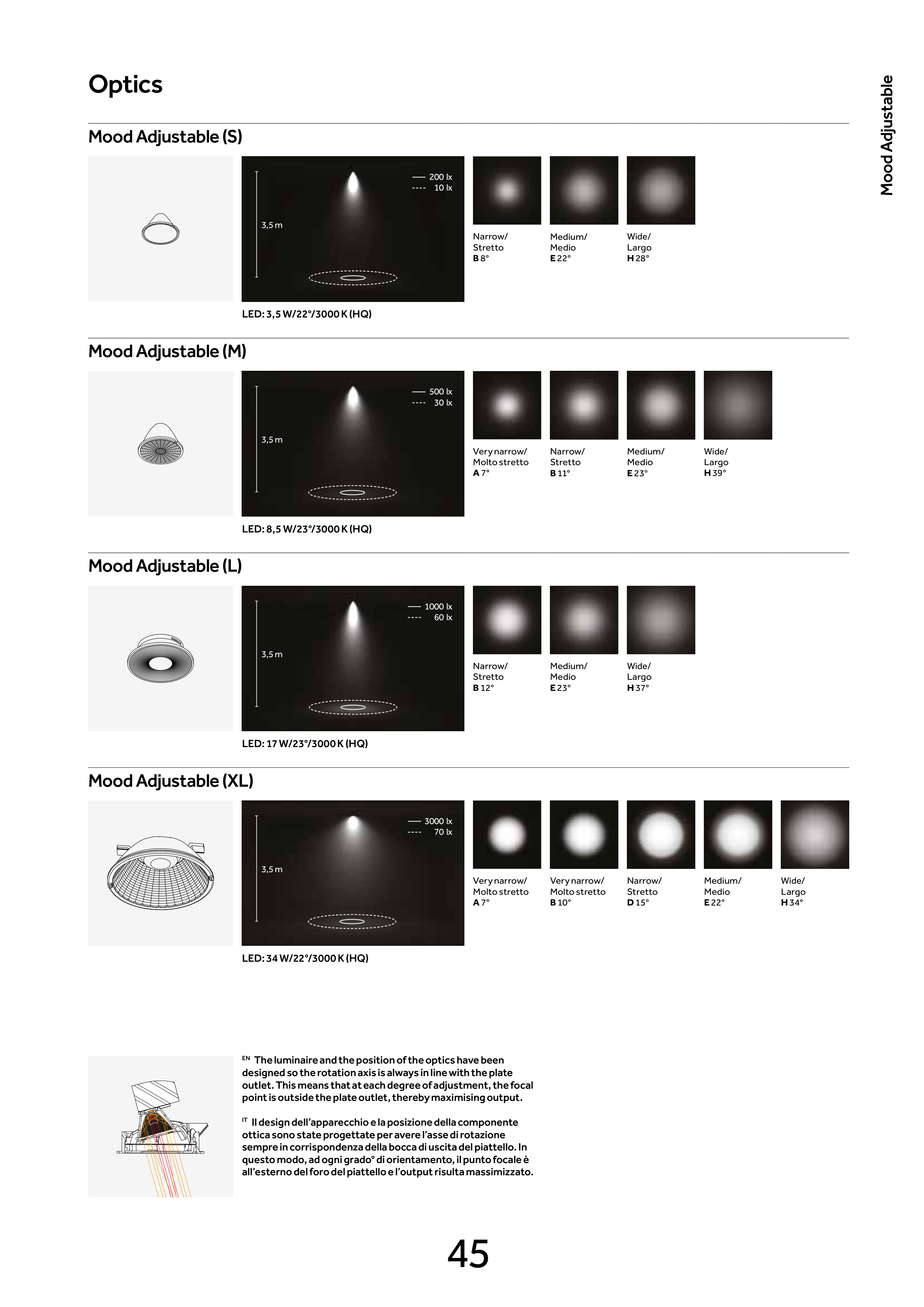 EN The luminaire and the position of the optics have been