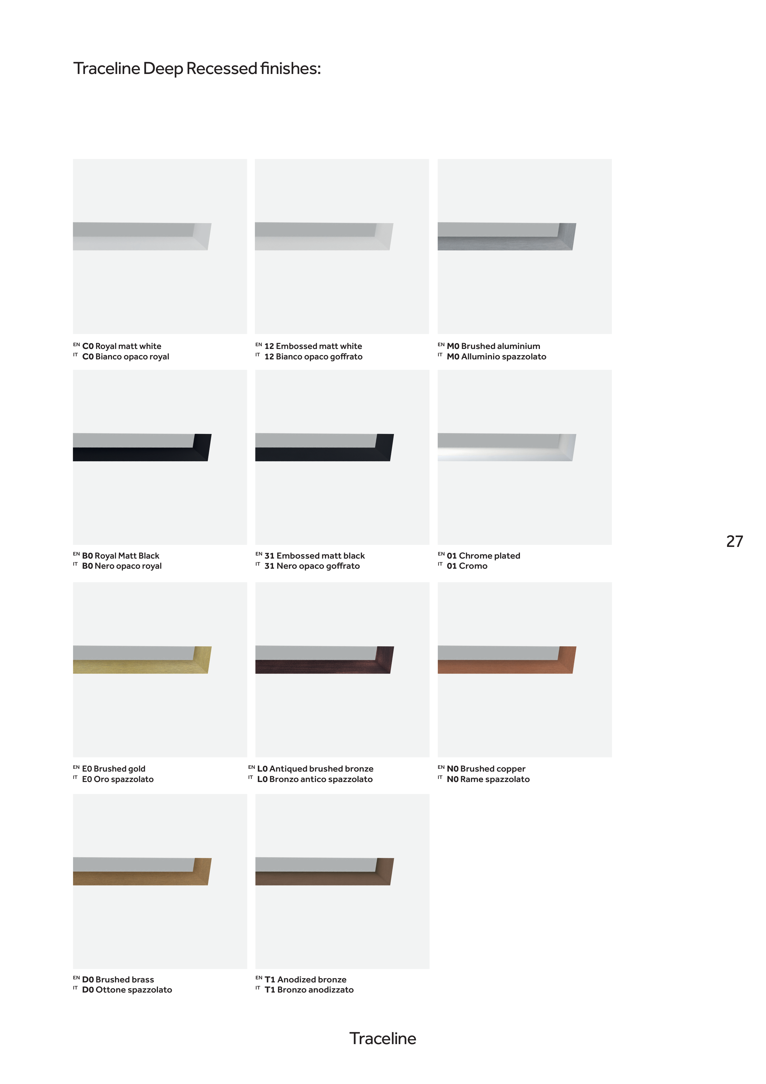 Traceline Deep Recessed finishes: