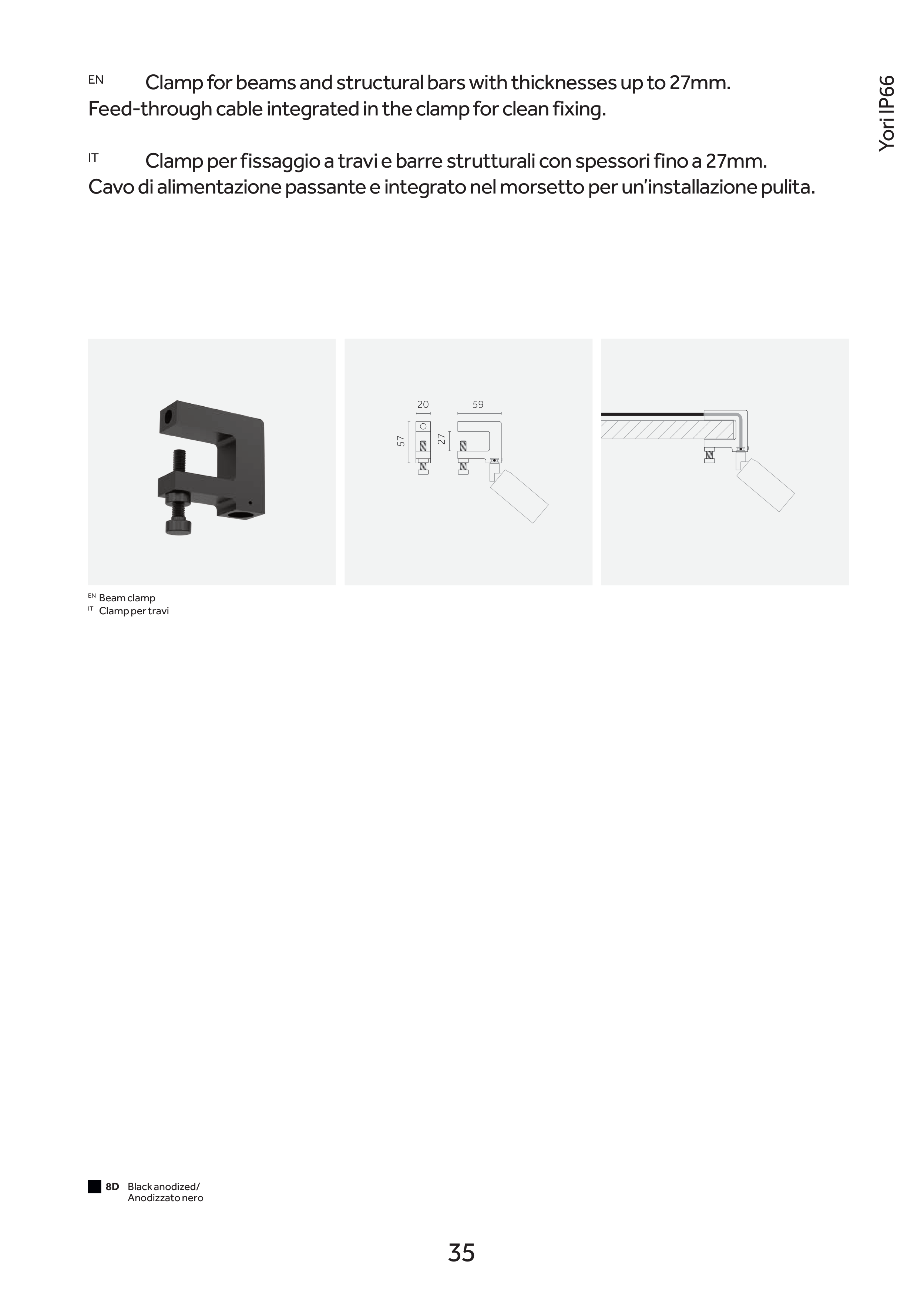 Clamp per fissaggio a travi e barre strutturali con spessori fino a 27mm.