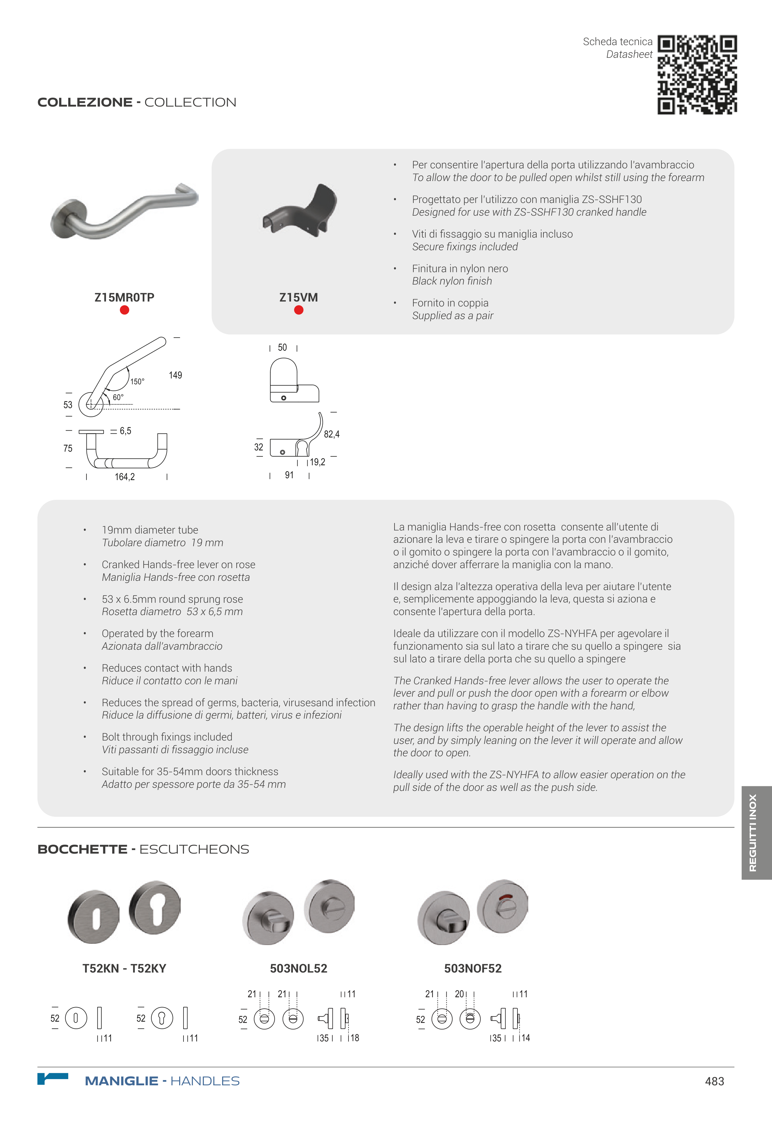 La maniglia Hands-free con rosetta consente all’utente di
