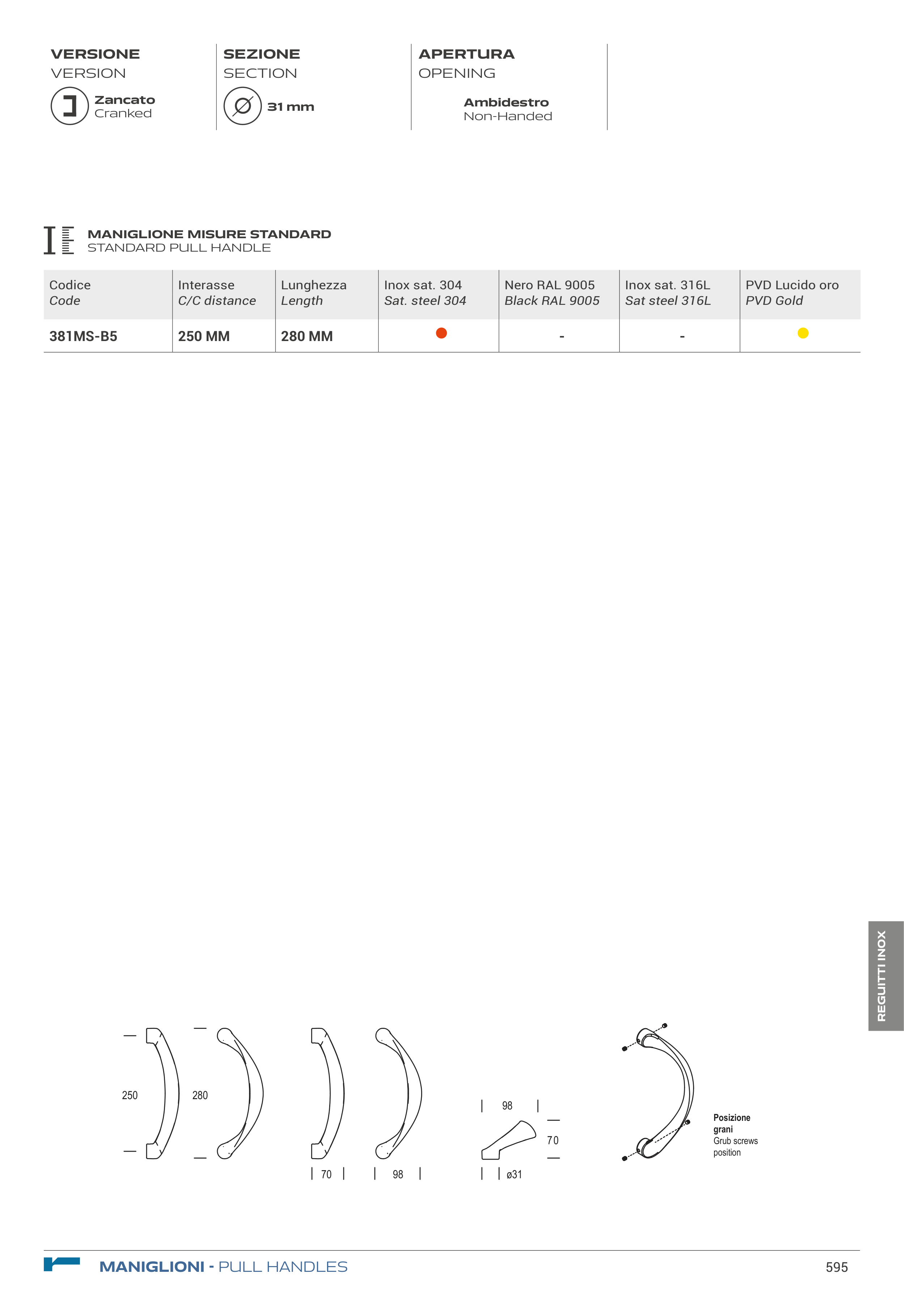 MANIGLIONE MISURE STANDARD