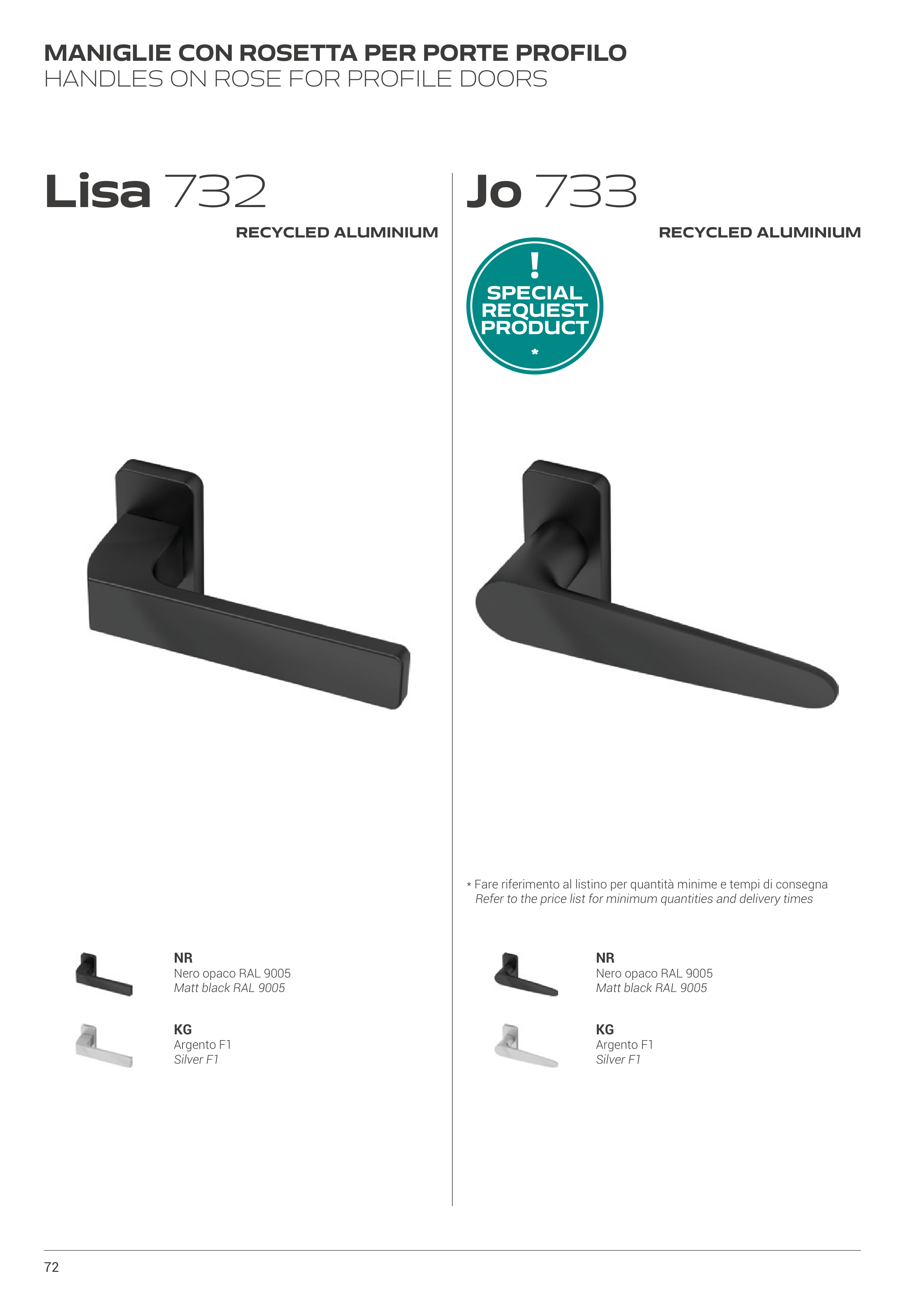 * Fare riferimento al listino per quantità minime e tempi di consegna