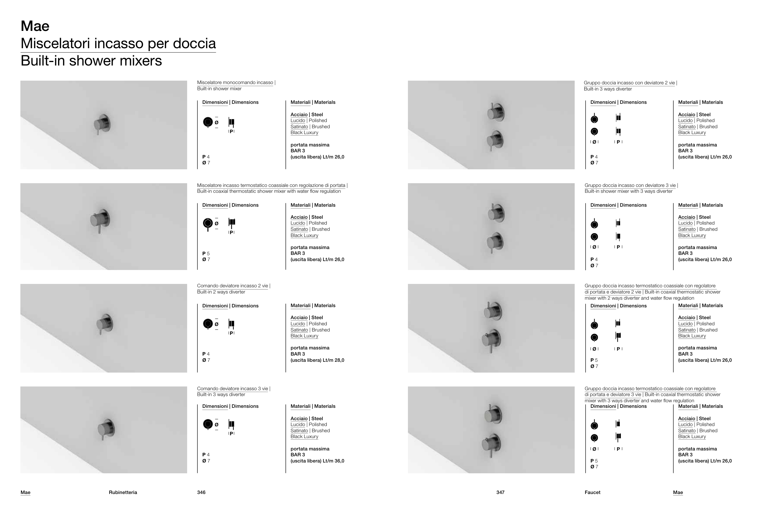 di portata e deviatore 3 vie | Built-in coaxial thermostatic shower