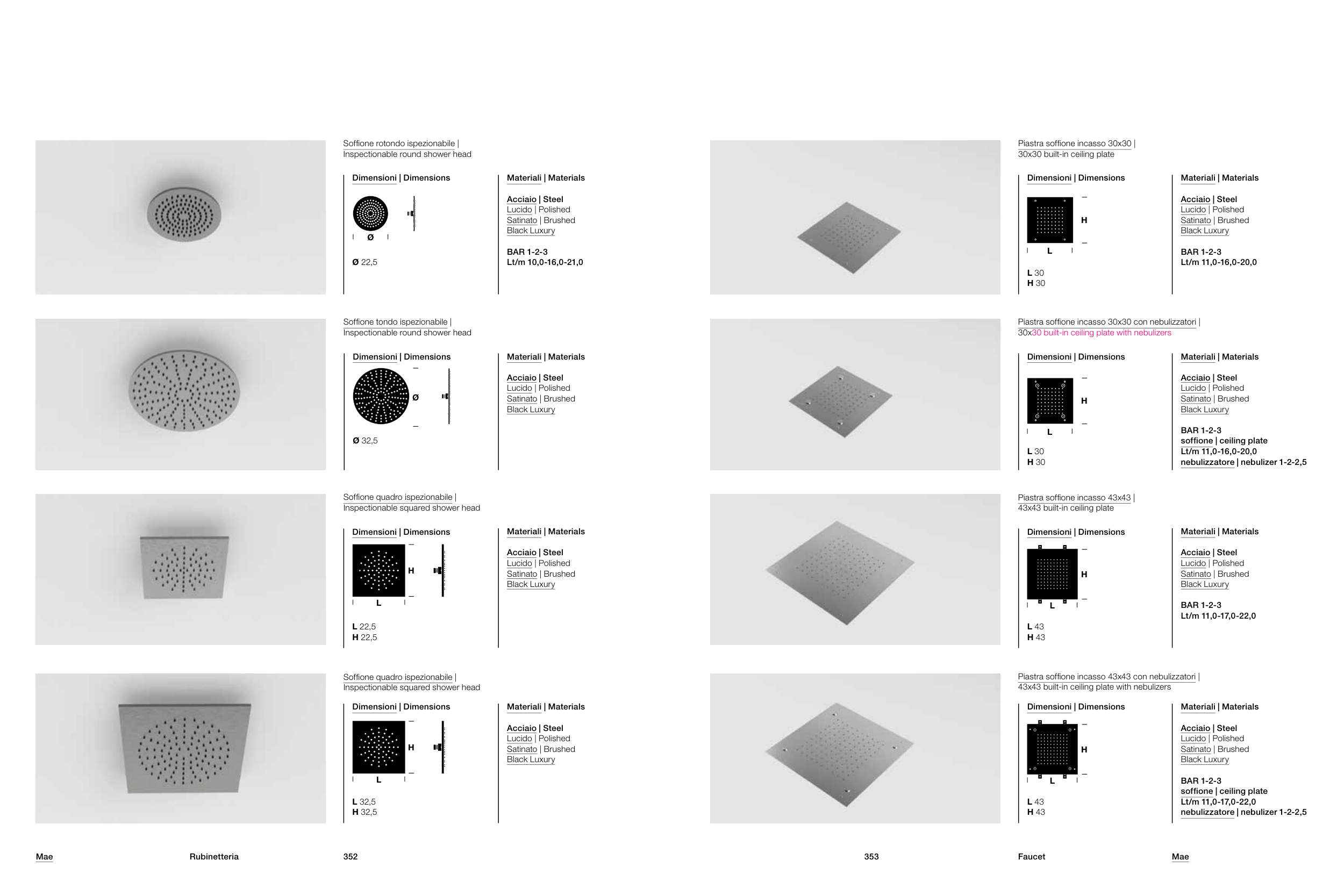 Piastra soffione incasso 43x43 con nebulizzatori |
