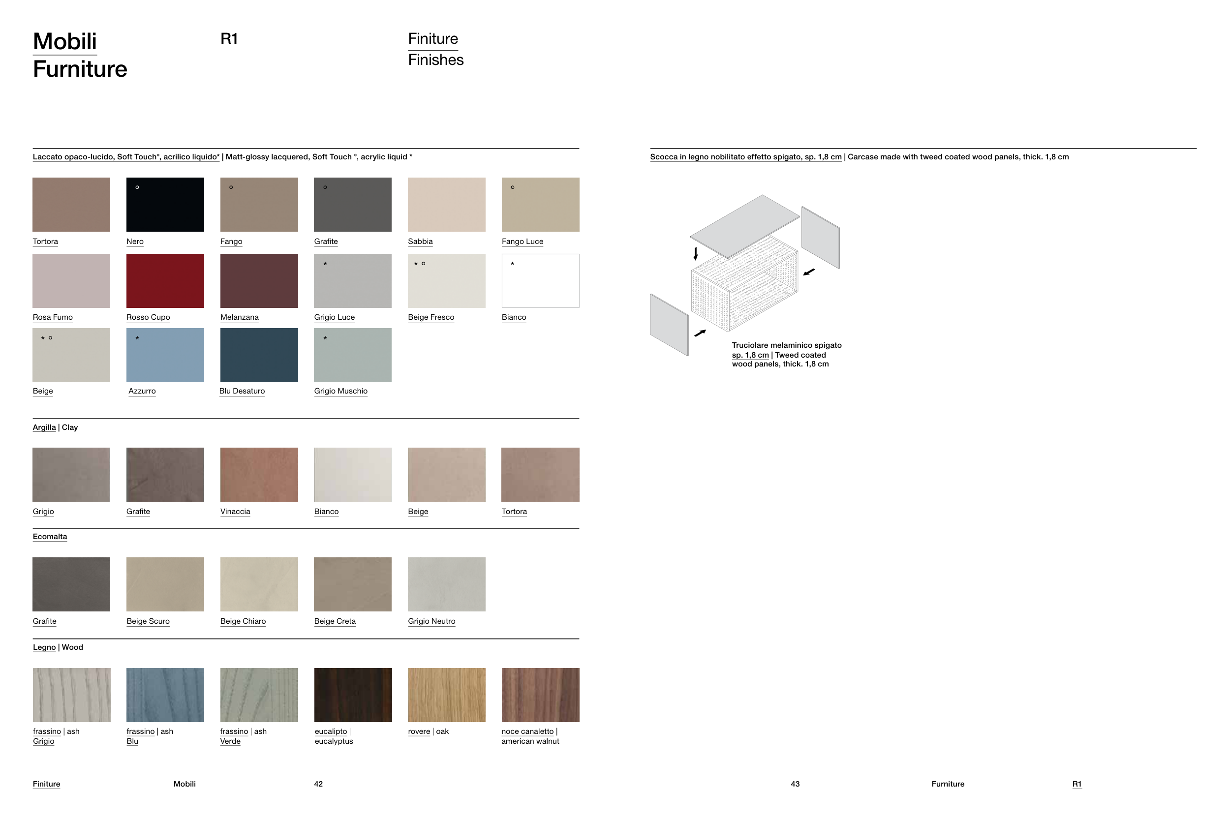 Scocca in legno nobilitato effetto spigato, sp. 1,8 cm | Carcase made with tweed coated wood panels, thick. 1,8 cm