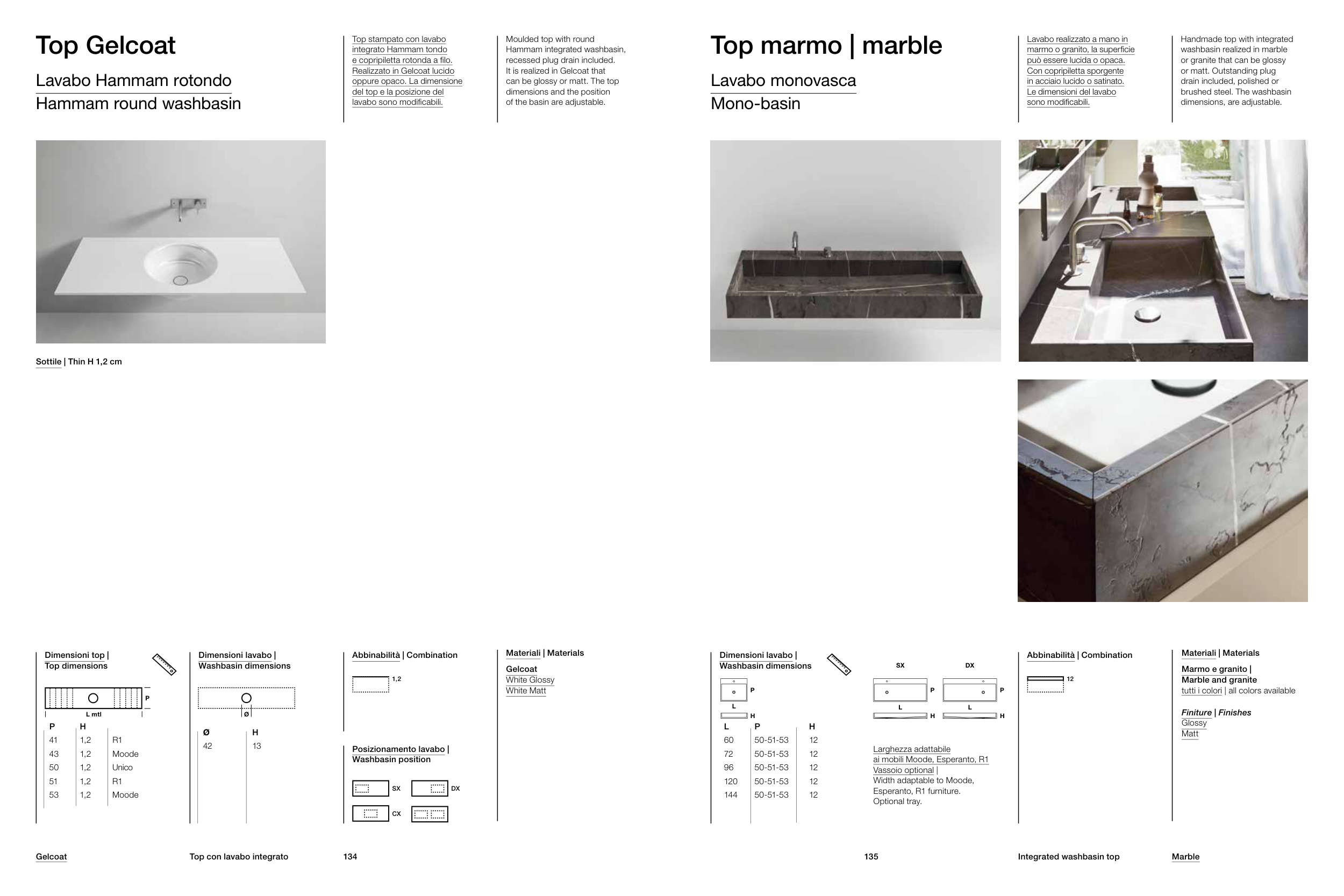 Top con lavabo integrato