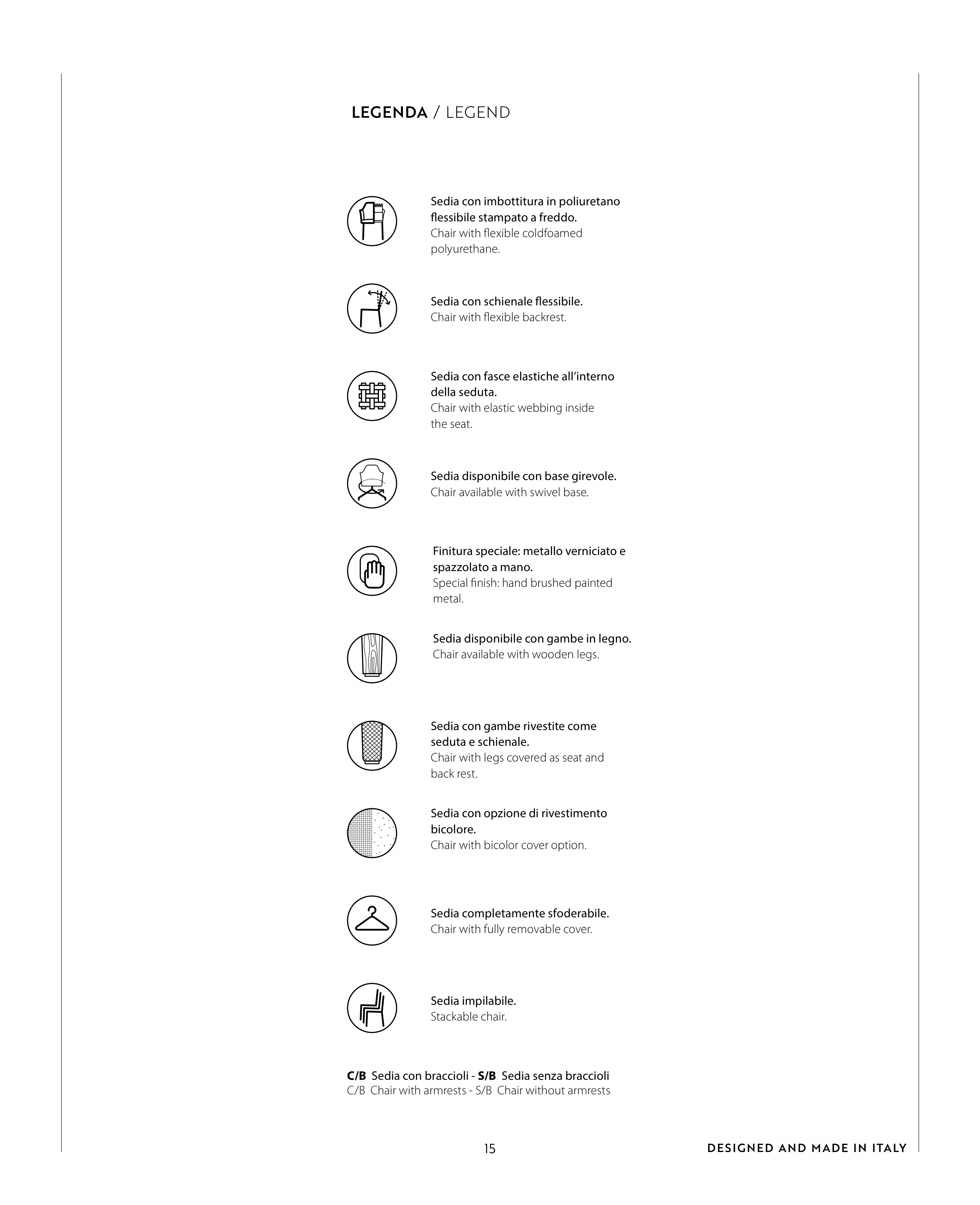 C/B Sedia con braccioli - S/B Sedia senza braccioli
