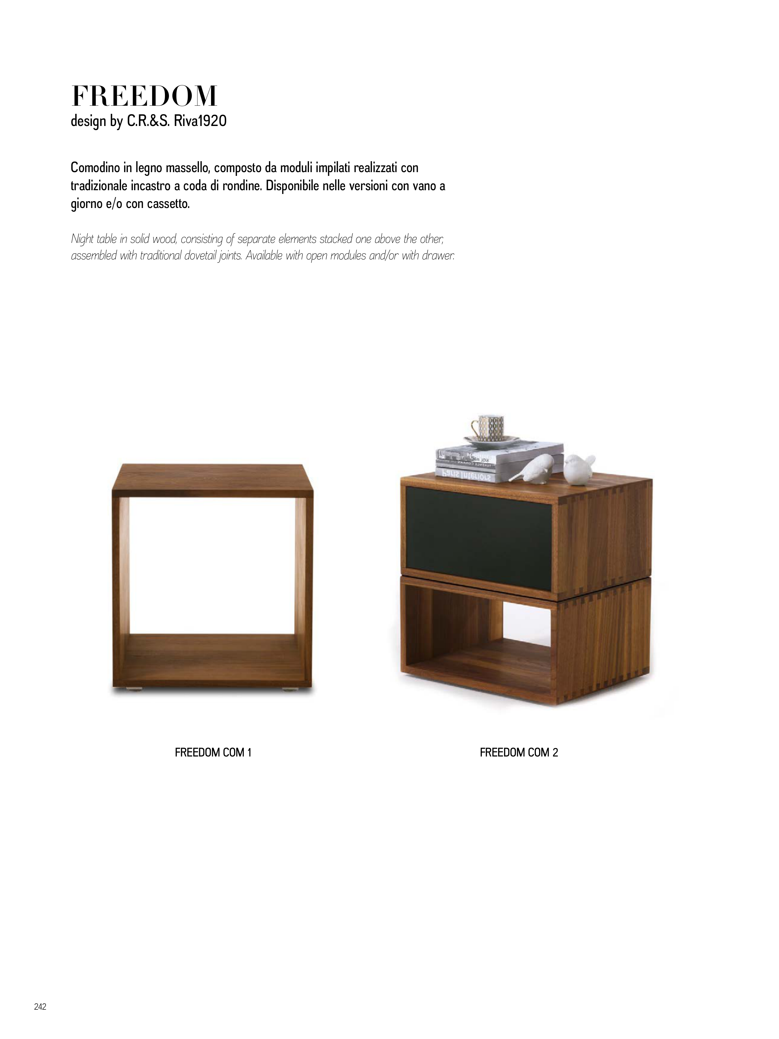 assembled with traditional dovetail joints. Available with open modules and/or with drawer.
