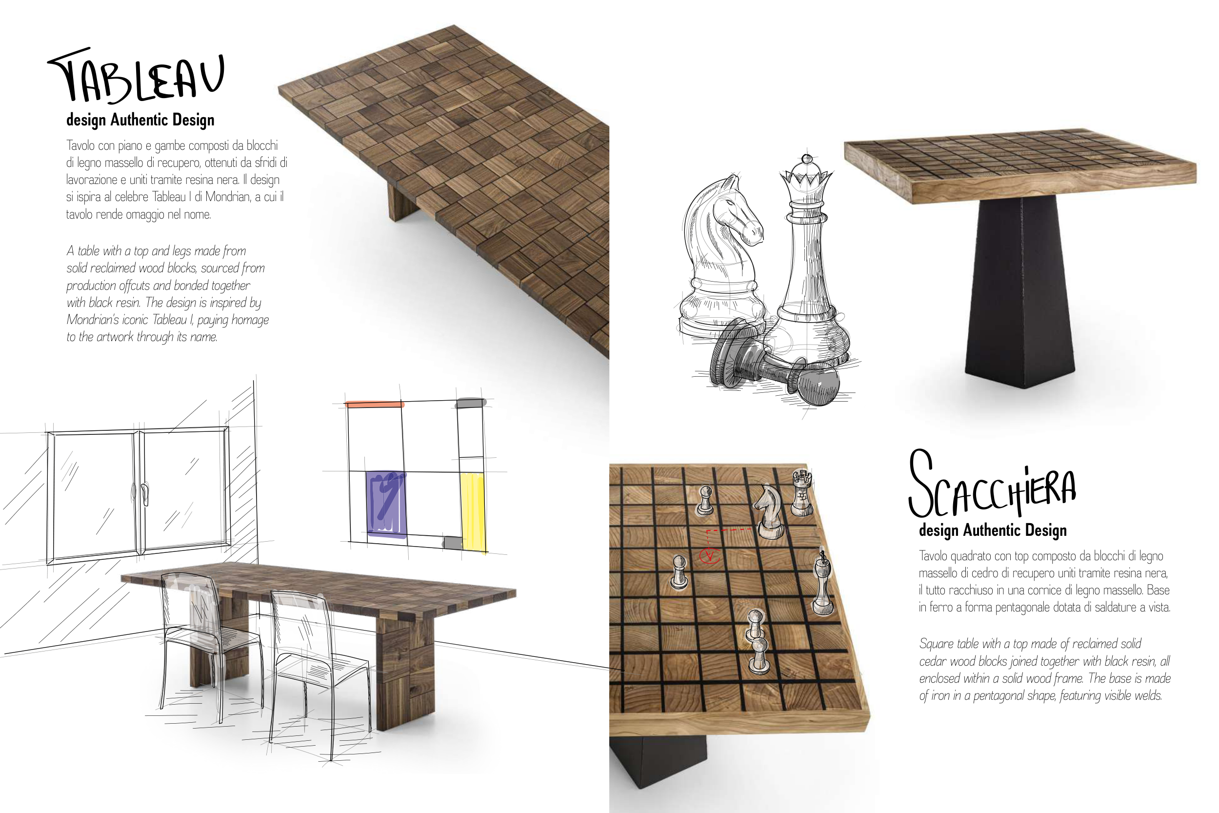 di legno massello di recupero, ottenuti da sfridi di