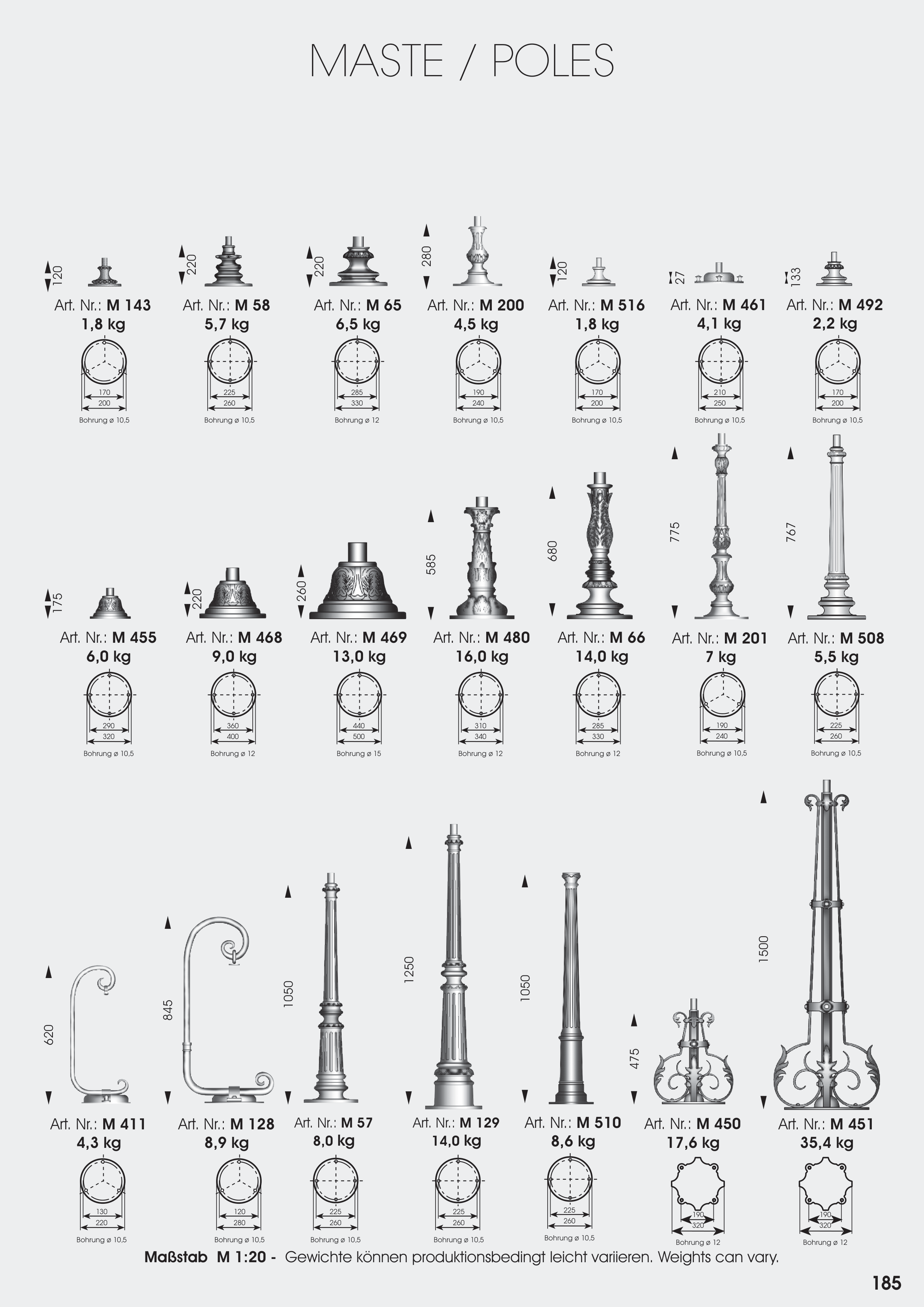 Maßstab M 1:20 - Gewichte können produktionsbedingt leicht variieren. Weights can vary.