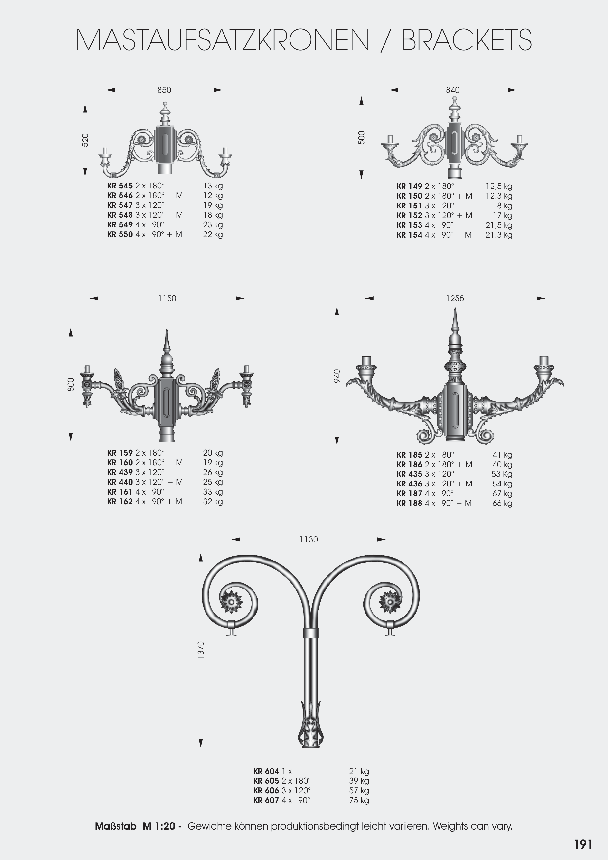 Maßstab M 1:20 - Gewichte können produktionsbedingt leicht variieren. Weights can vary.