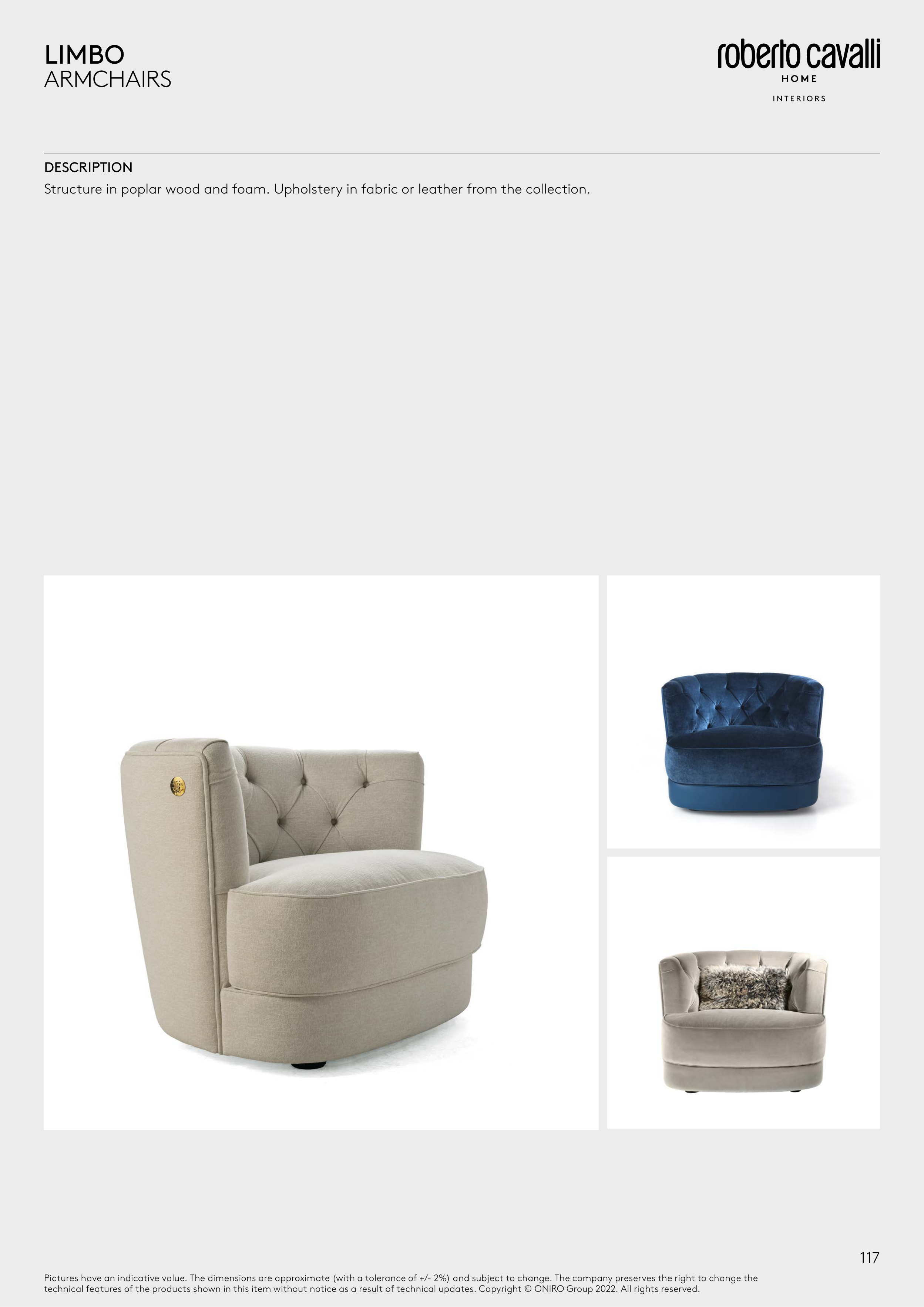Structure in poplar wood and foam. Upholstery in fabric or leather from the collection.