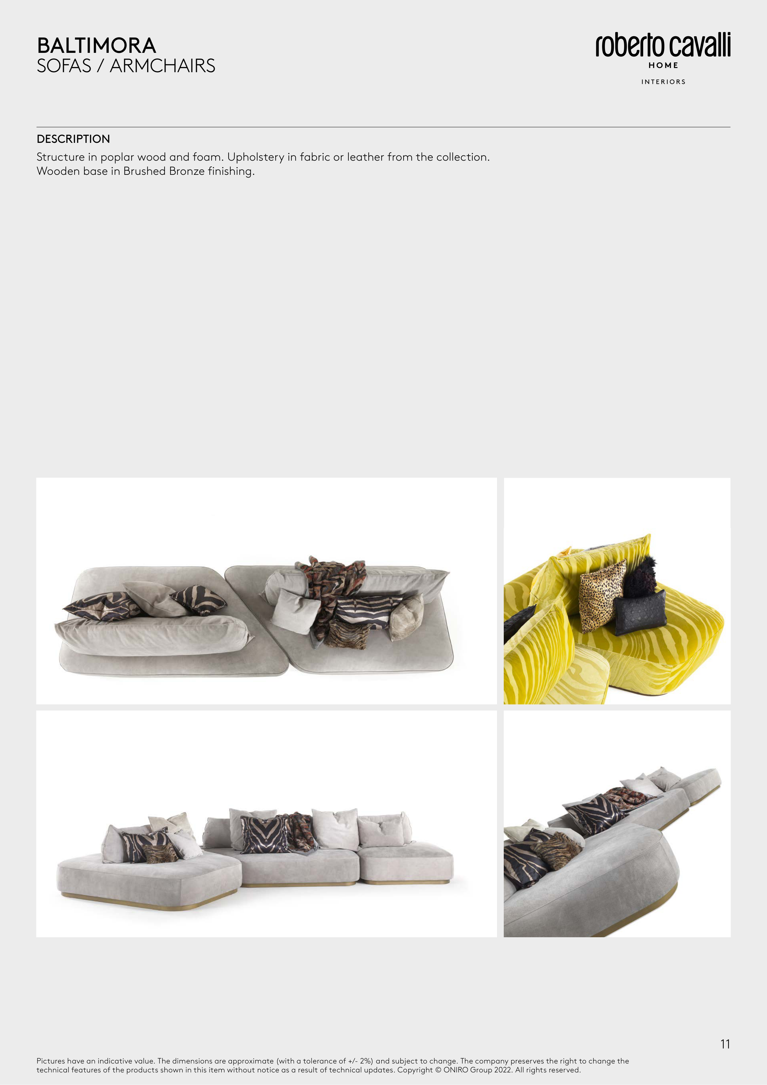 Structure in poplar wood and foam. Upholstery in fabric or leather from the collection.