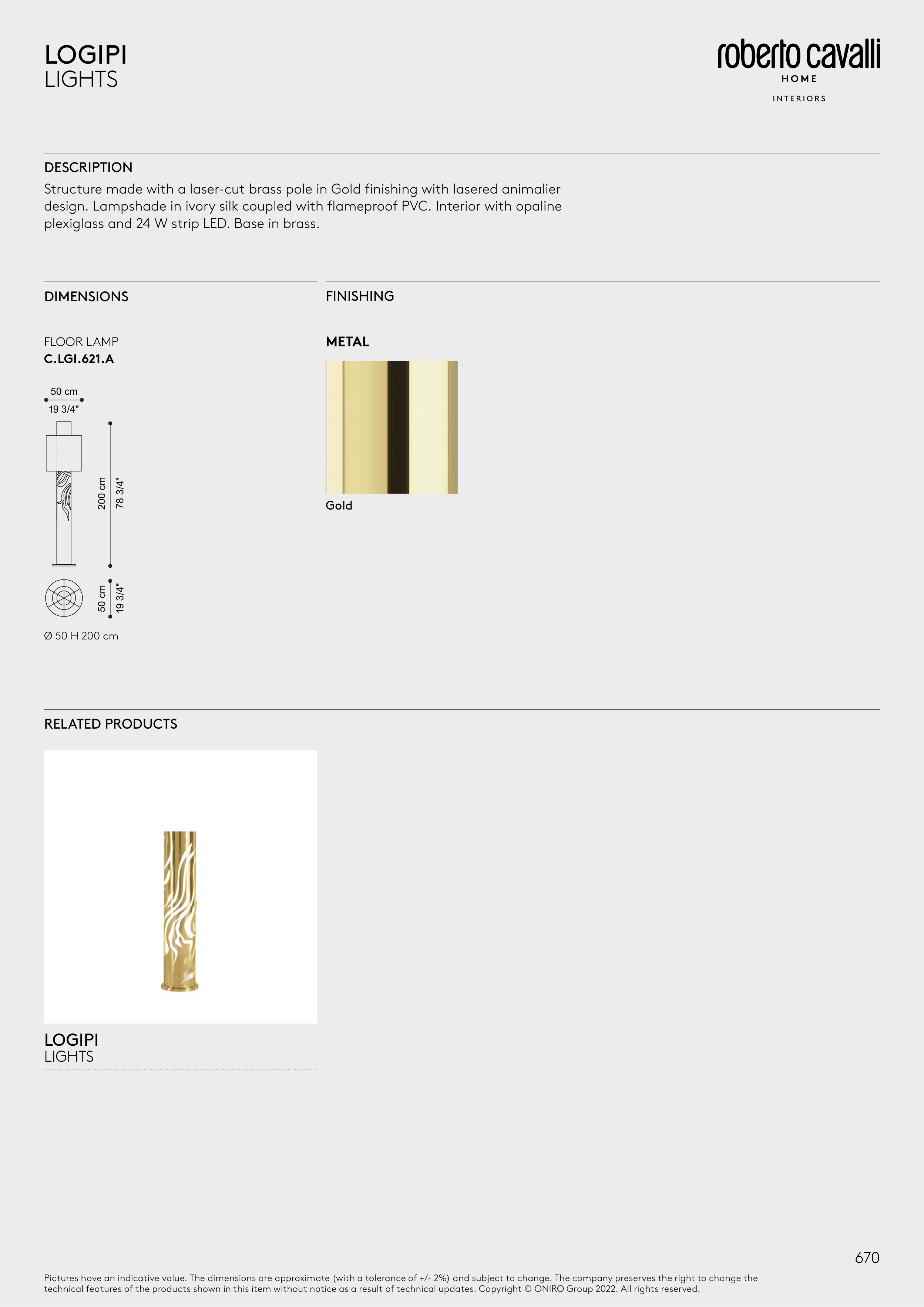 Structure made with a laser-cut brass pole in Gold finishing with lasered animalier