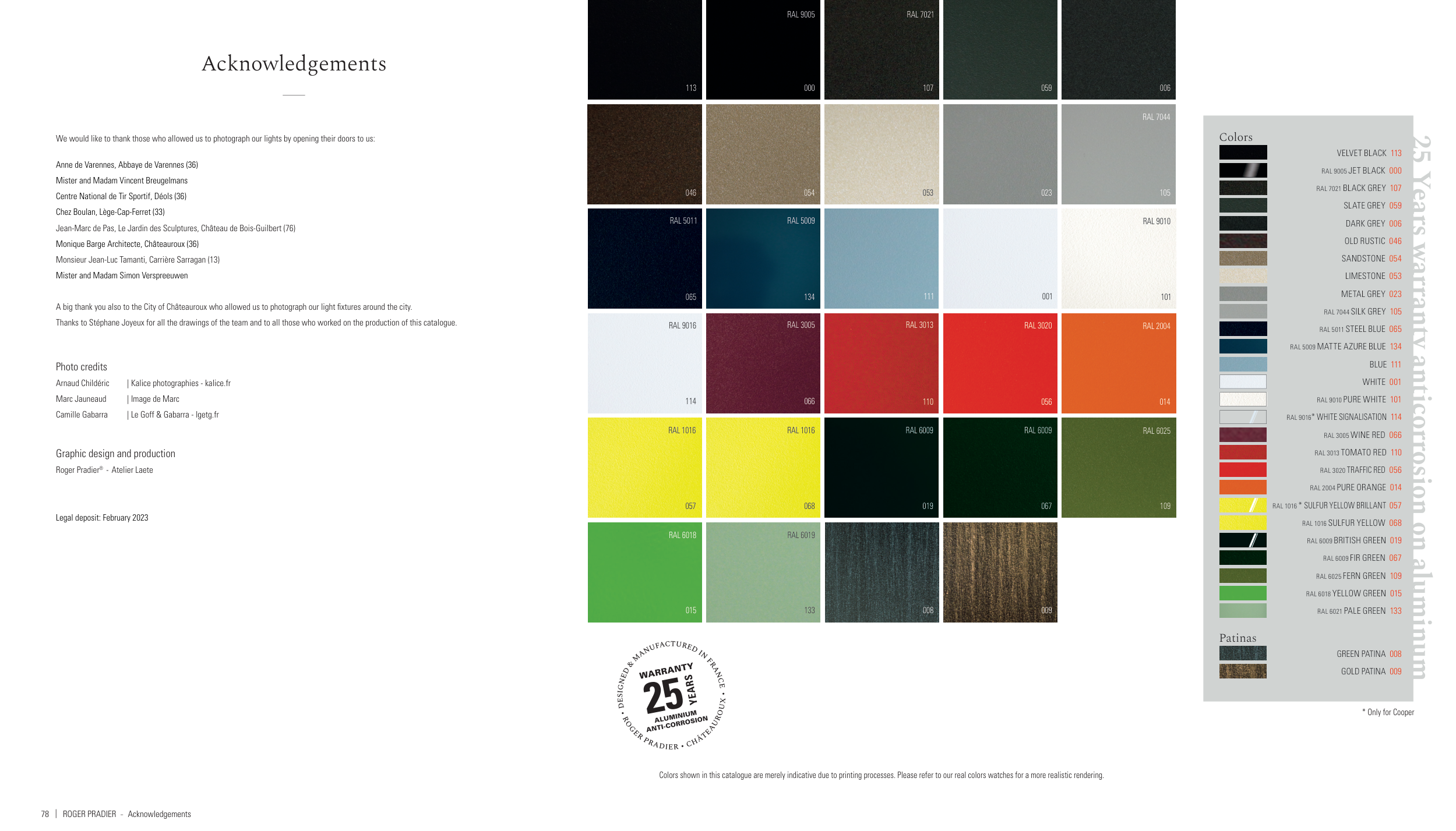 Thanks to Stéphane Joyeux for all the drawings of the team and to all those who worked on the production of this catalogue.