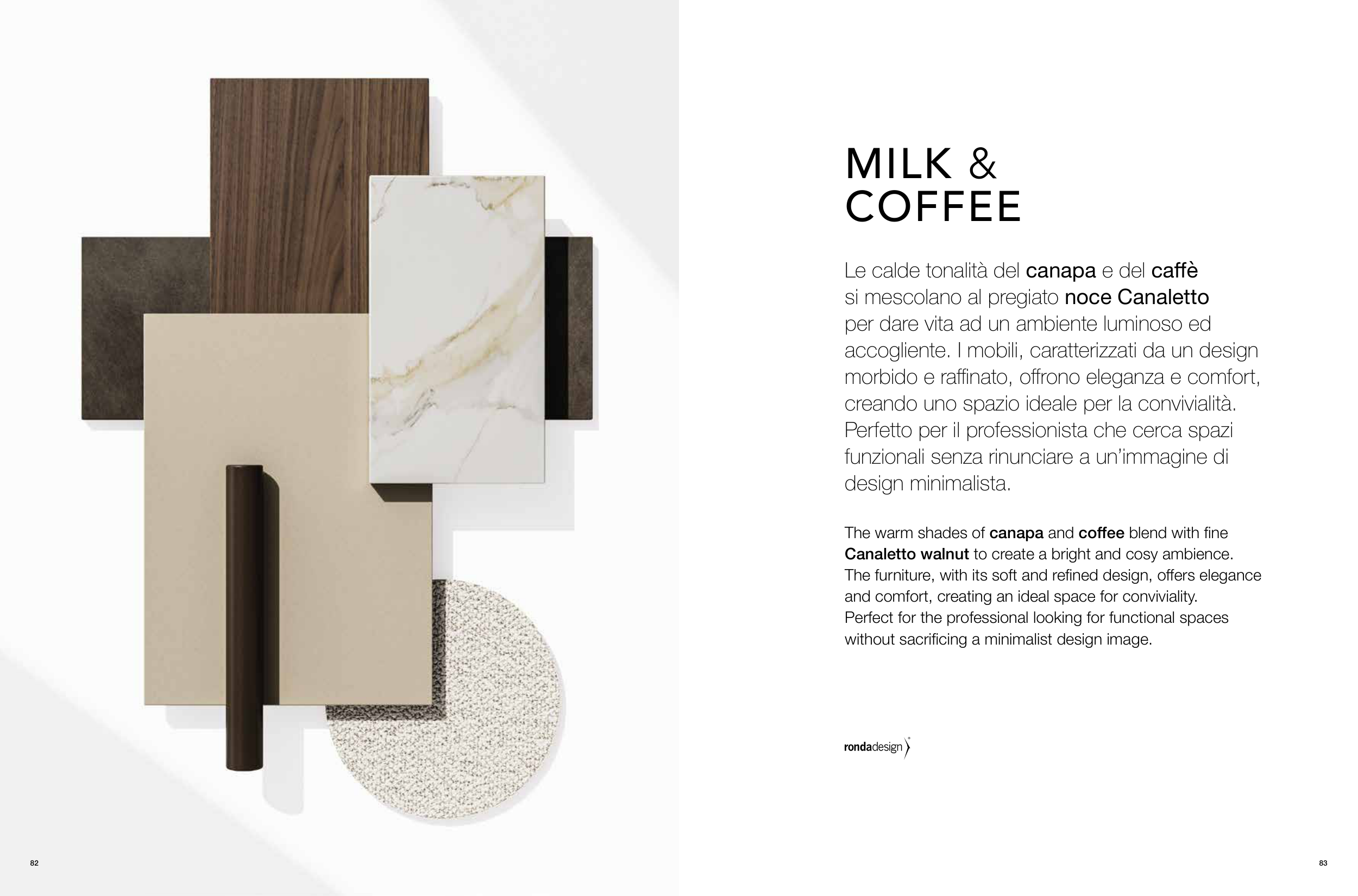The warm shades of canapa and coffee blend with fine