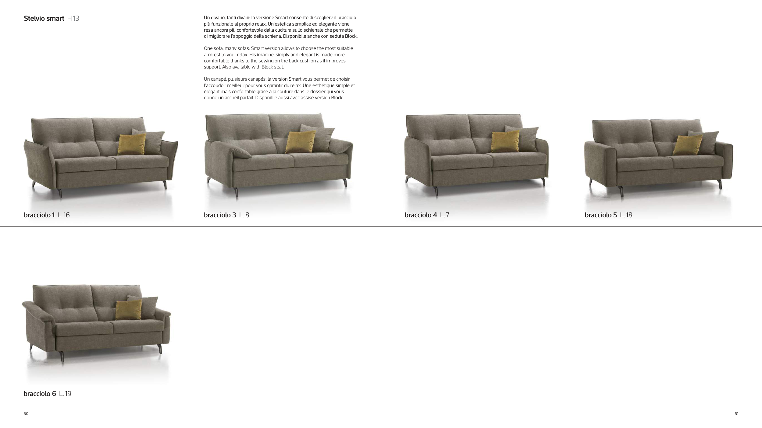 Un divano, tanti divani: la versione Smart consente di scegliere il bracciolo
