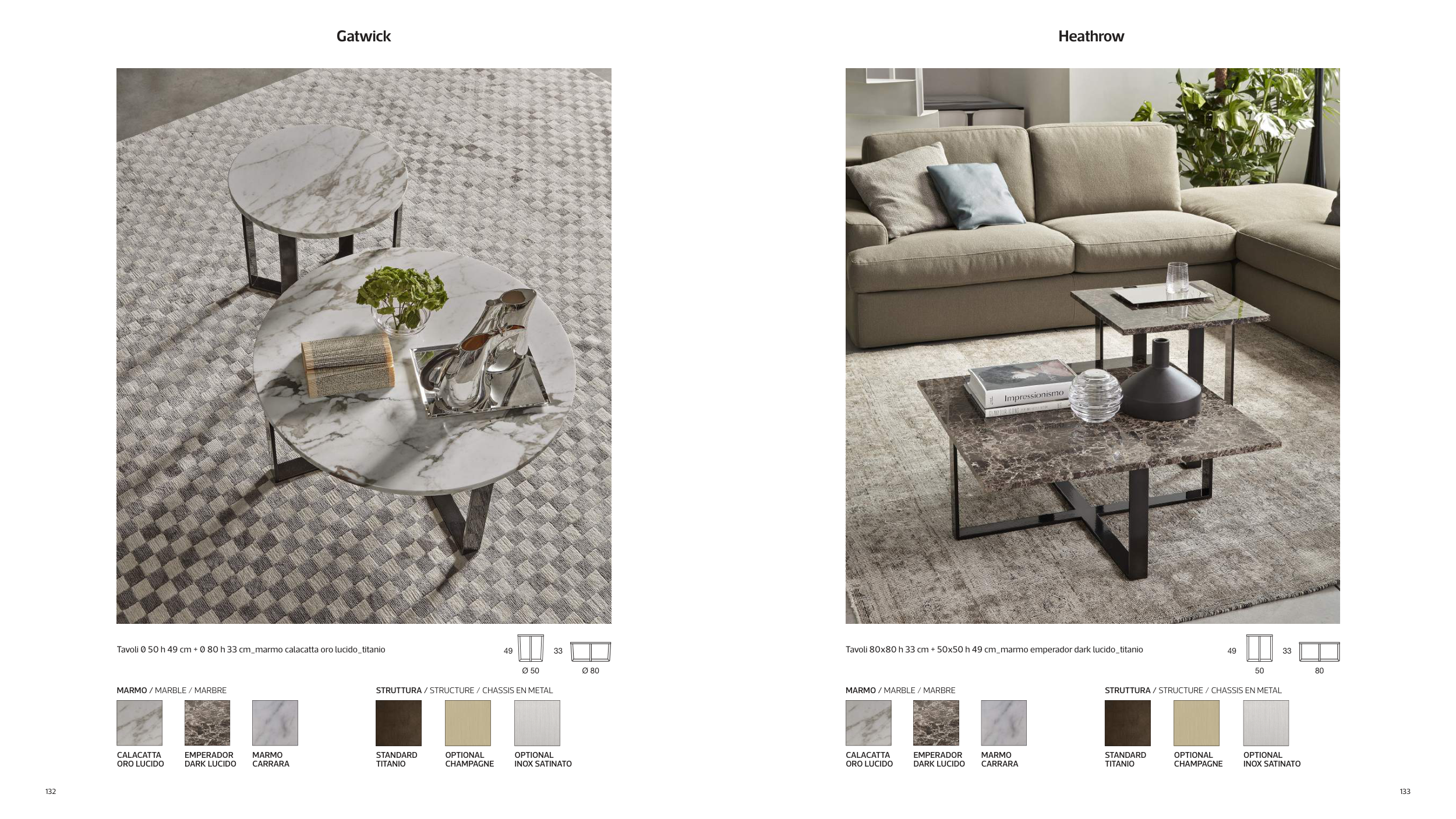 Tavoli 0 50 h 49 cm + 0 80 h 33 cm_marmo calacatta oro lucido_titanio