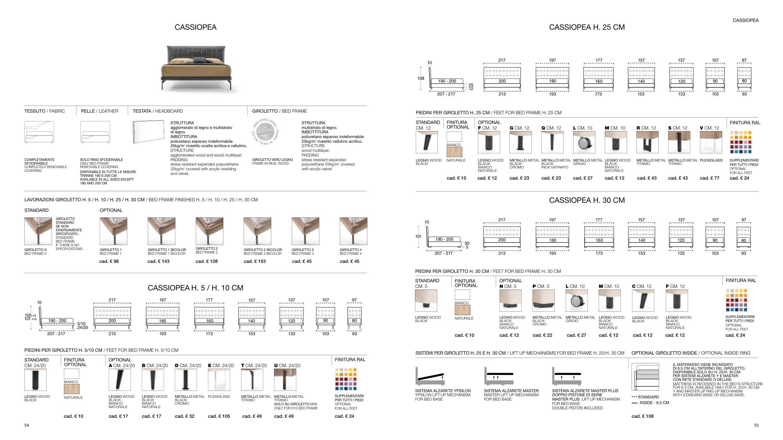 SISTEMI PER GIROLETTO H. 25 E H. 30 CM / LIFT UP MECHANISMS FOR BED FRAME H. 25/H. 30 CM