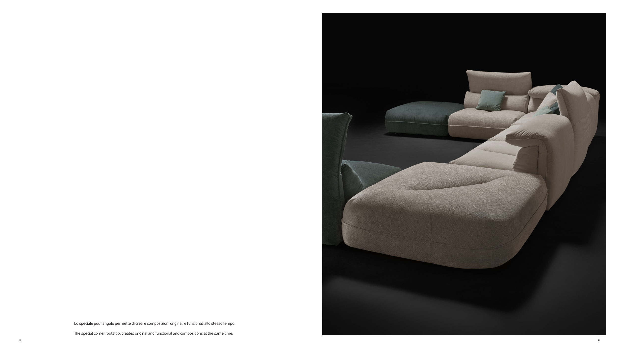 Lo speciale pouf angolo permette di creare composizioni originali e funzionali allo stesso tempo.