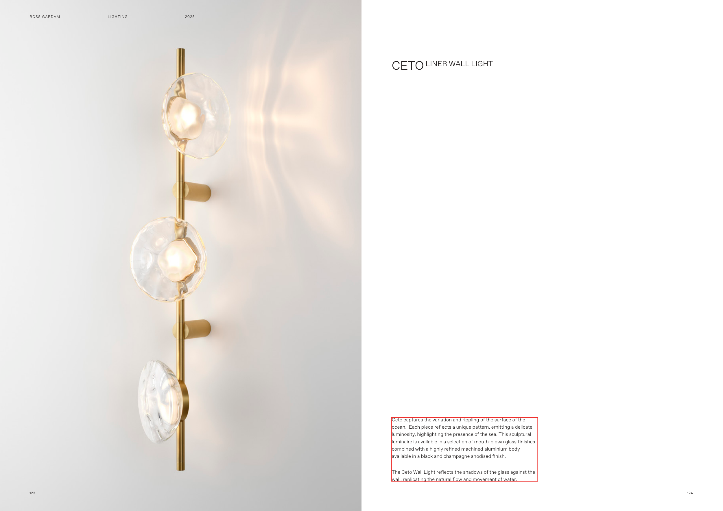 The Ceto Wall Light reflects the shadows of the glass against the
