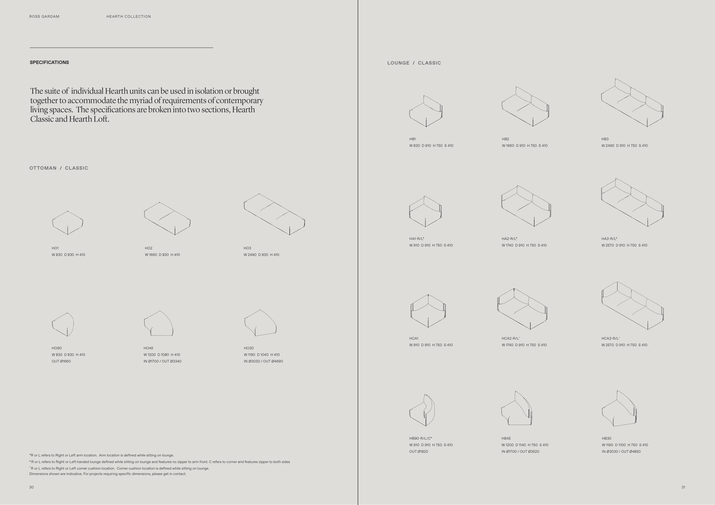 *R or L refers to Right or Left arm location. Arm location is defined while sitting on lounge.