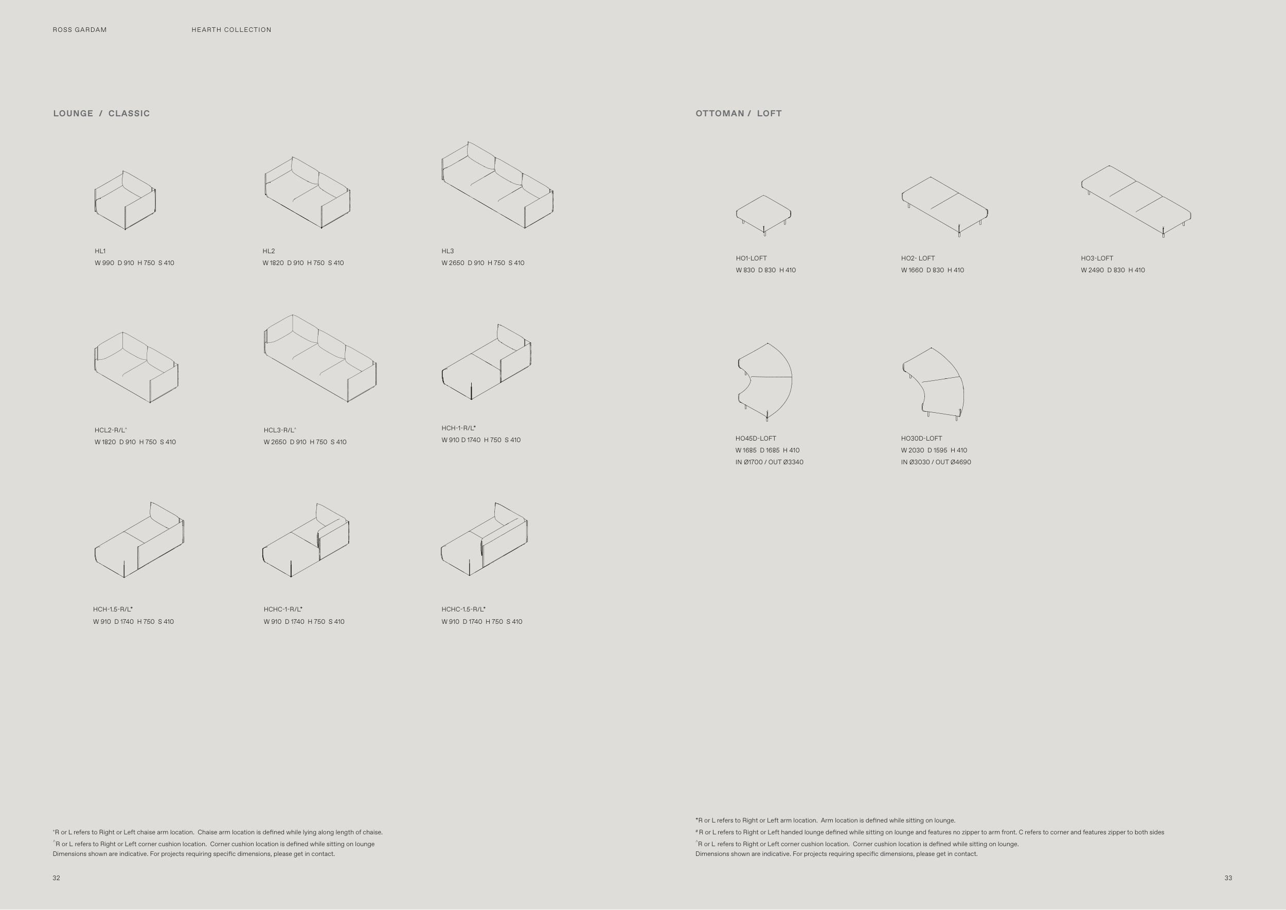 ^R or L refers to Right or Left corner cushion location. Corner cushion location is defined while sitting on lounge.