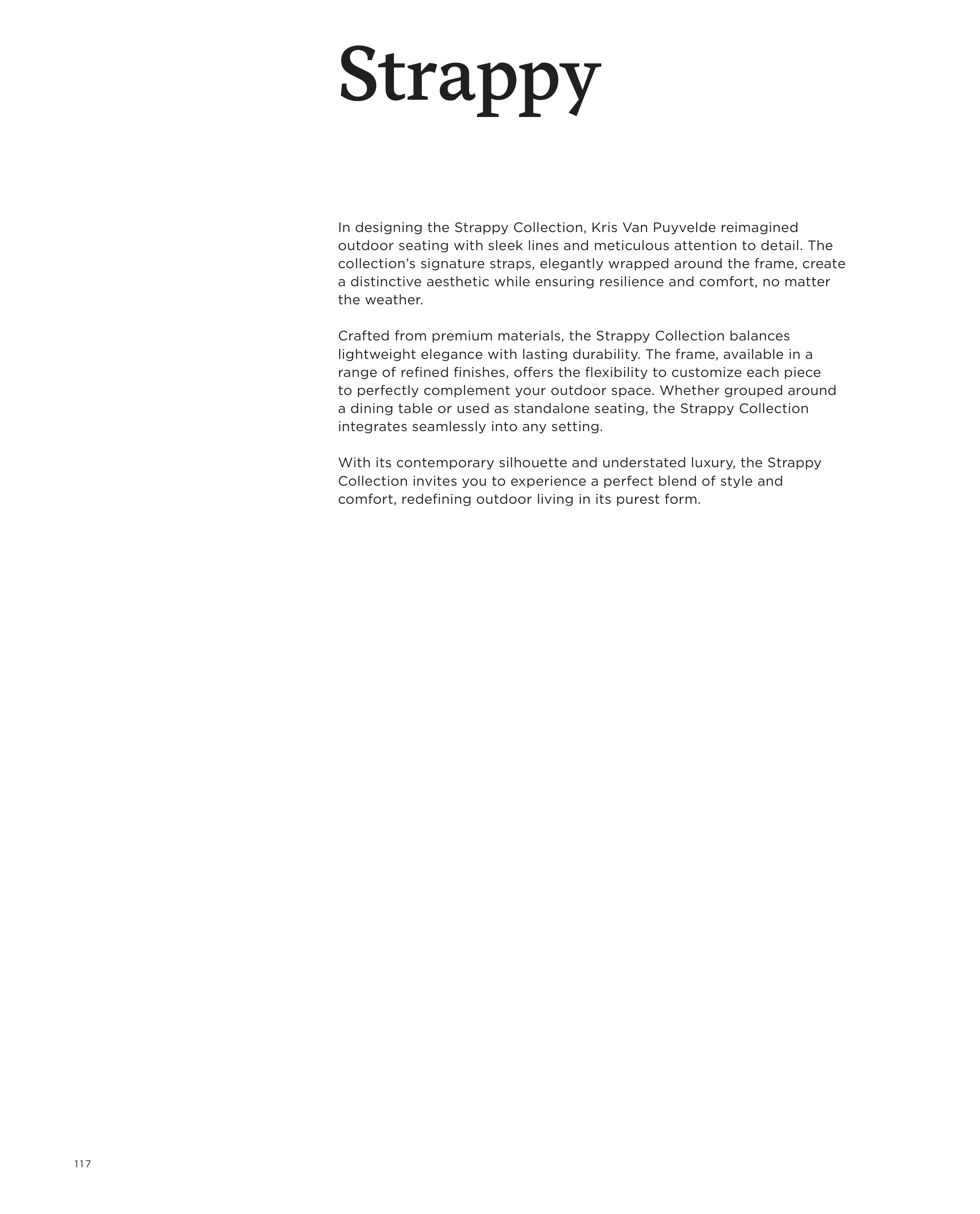 a dining table or used as standalone seating, the Strappy Collection