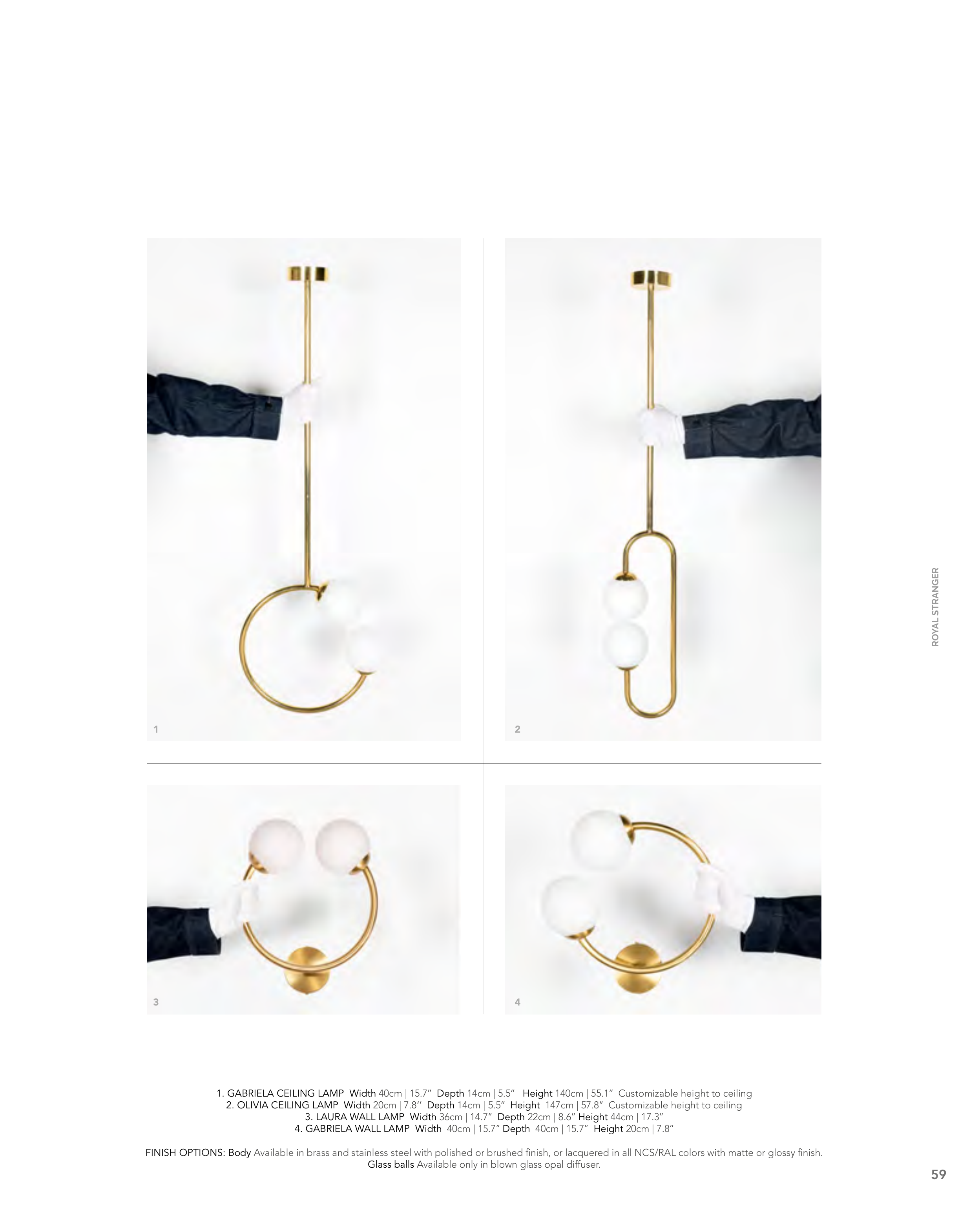 1. GABRIELA CEILING LAMP Width 40cm | 15.7’’ Depth 14cm | 5.5’’ Height 140cm | 55.1’’ Customizable height to ceiling