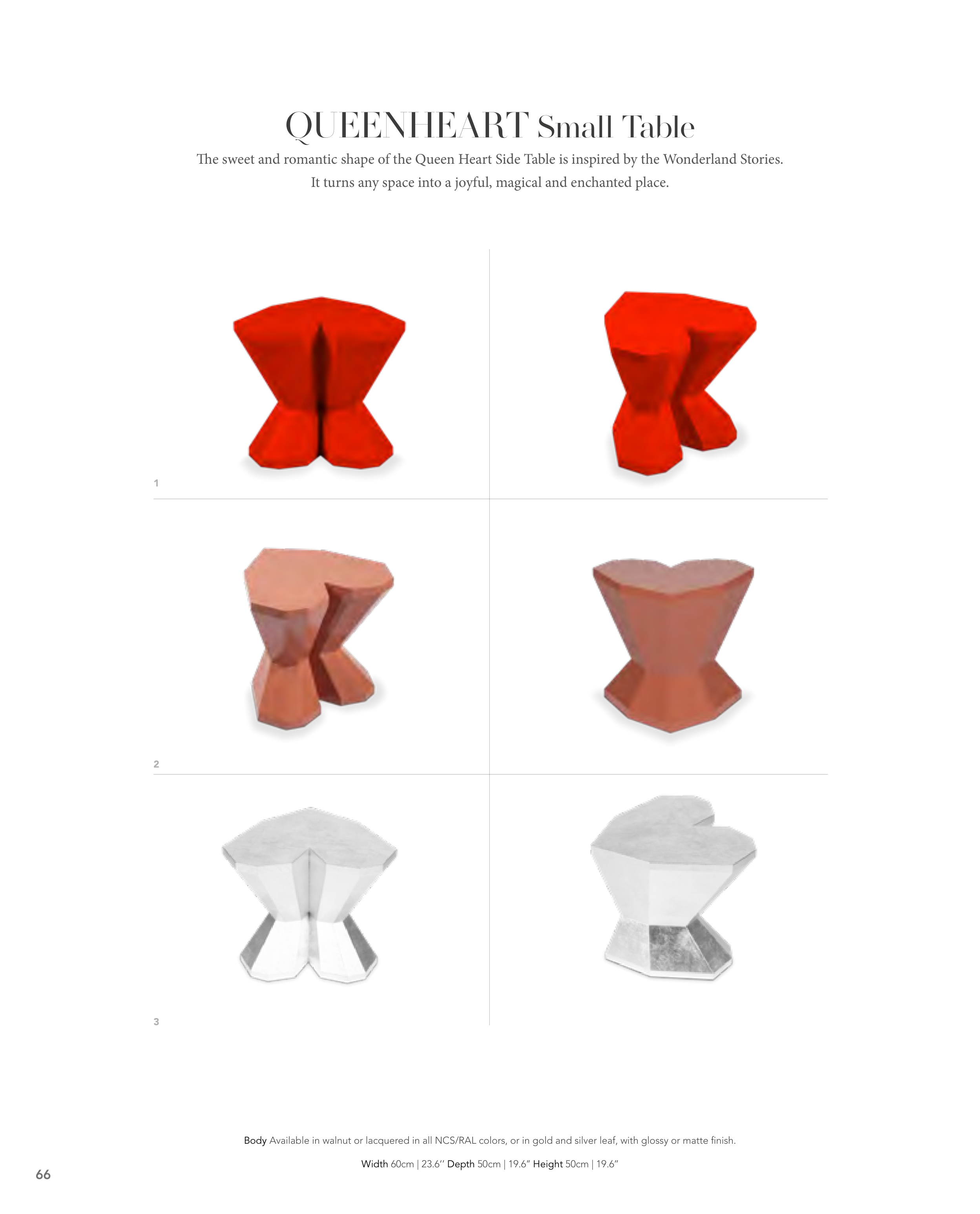The sweet and romantic shape of the Queen Heart Side Table is inspired by the Wonderland Stories.