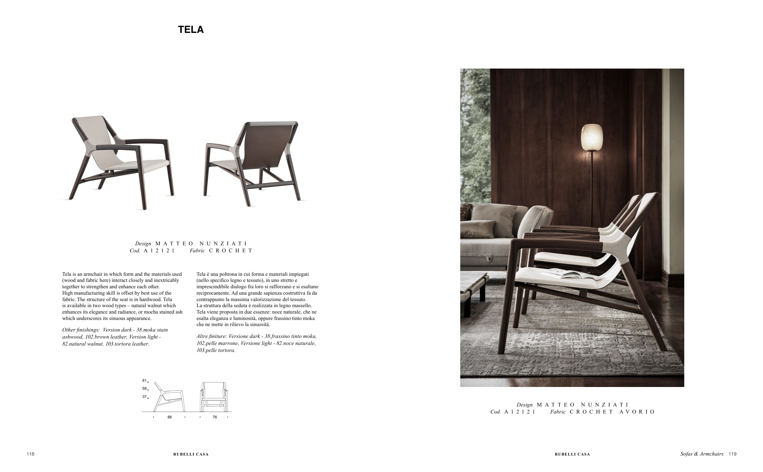 Tela viene proposta in due essenze: noce naturale, che ne