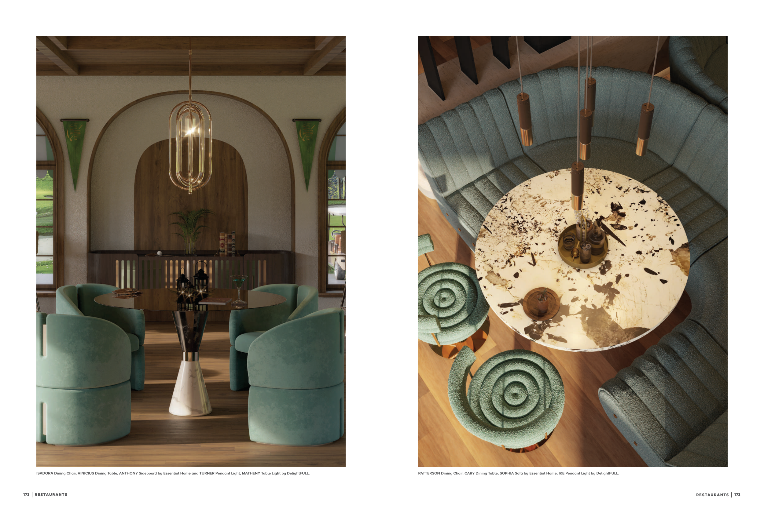 PATTERSON Dining Chair, CARY Dining Table, SOPHIA Sofa by Essential Home, IKE Pendant Light by DelightFULL.