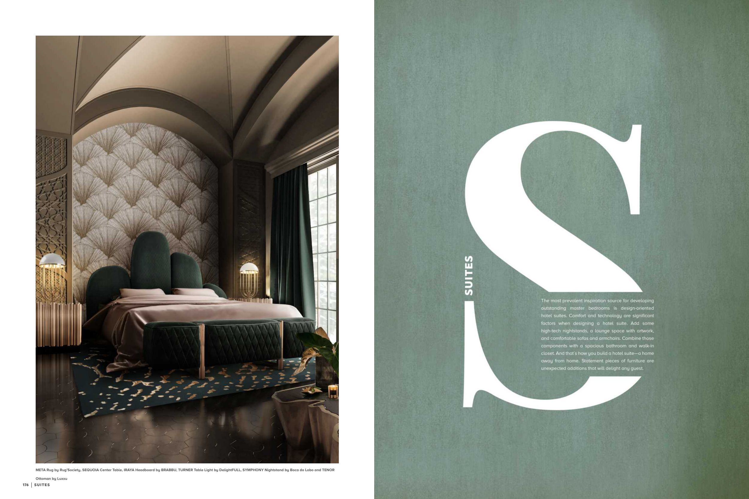 META Rug by Rug’Society, SEQUOIA Center Table, IRAYA Headboard by BRABBU, TURNER Table Light by DelightFULL, SYMPHONY Nightstand by Boca do Lobo and TENOR