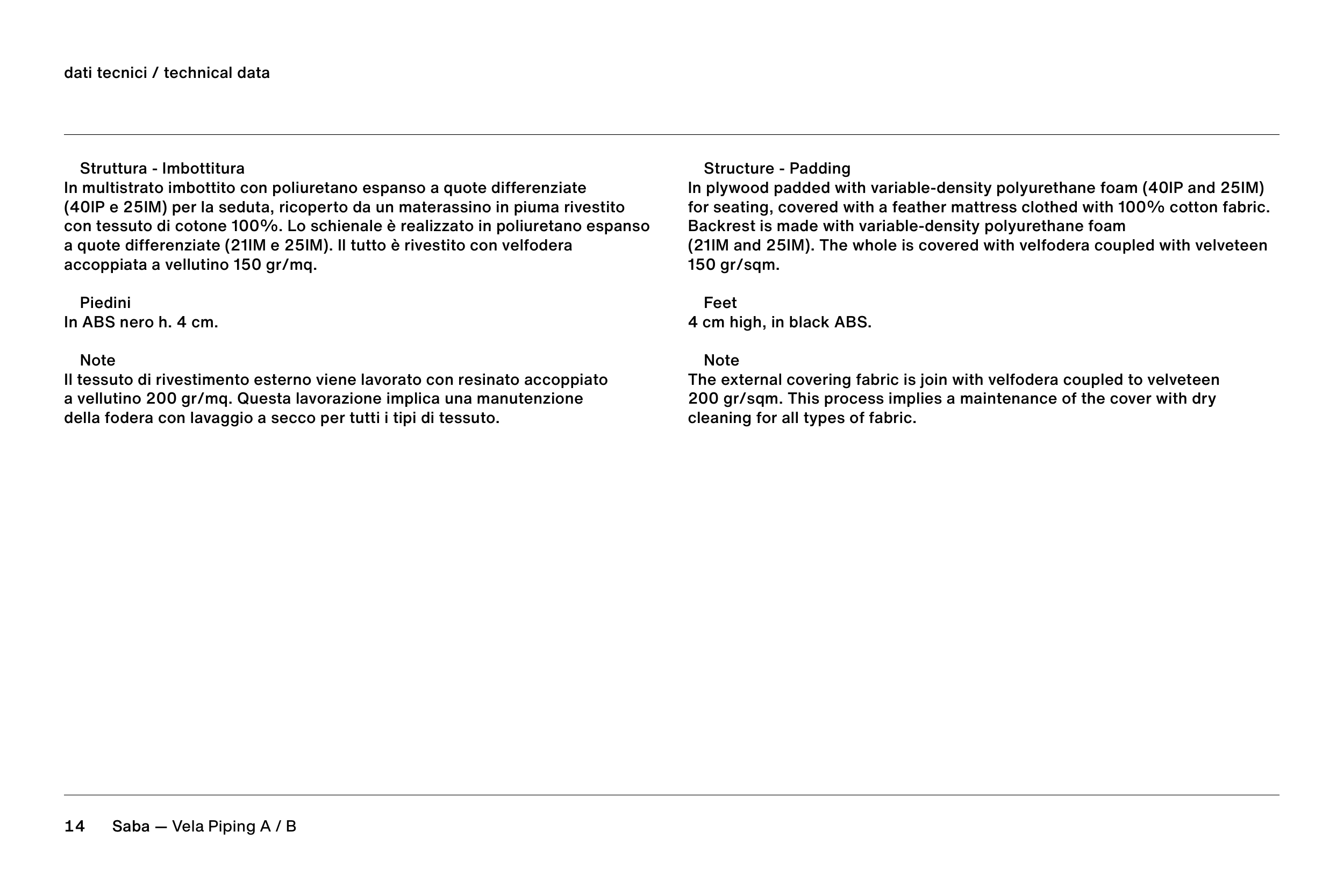 (40IP e 25IM) per la seduta, ricoperto da un materassino in piuma rivestito