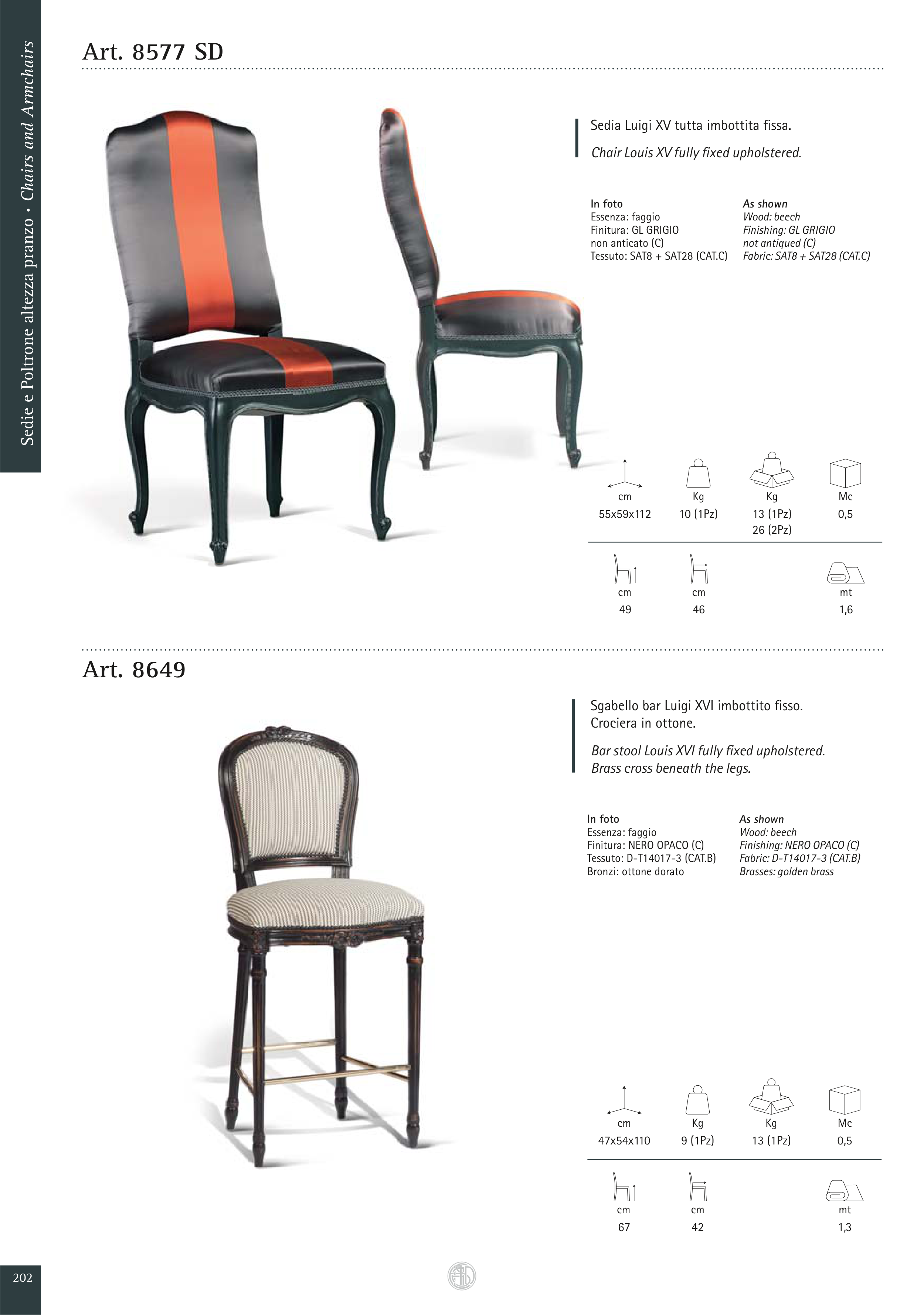 Sedie e Poltrone altezza pranzo · Chairs and Armchairs